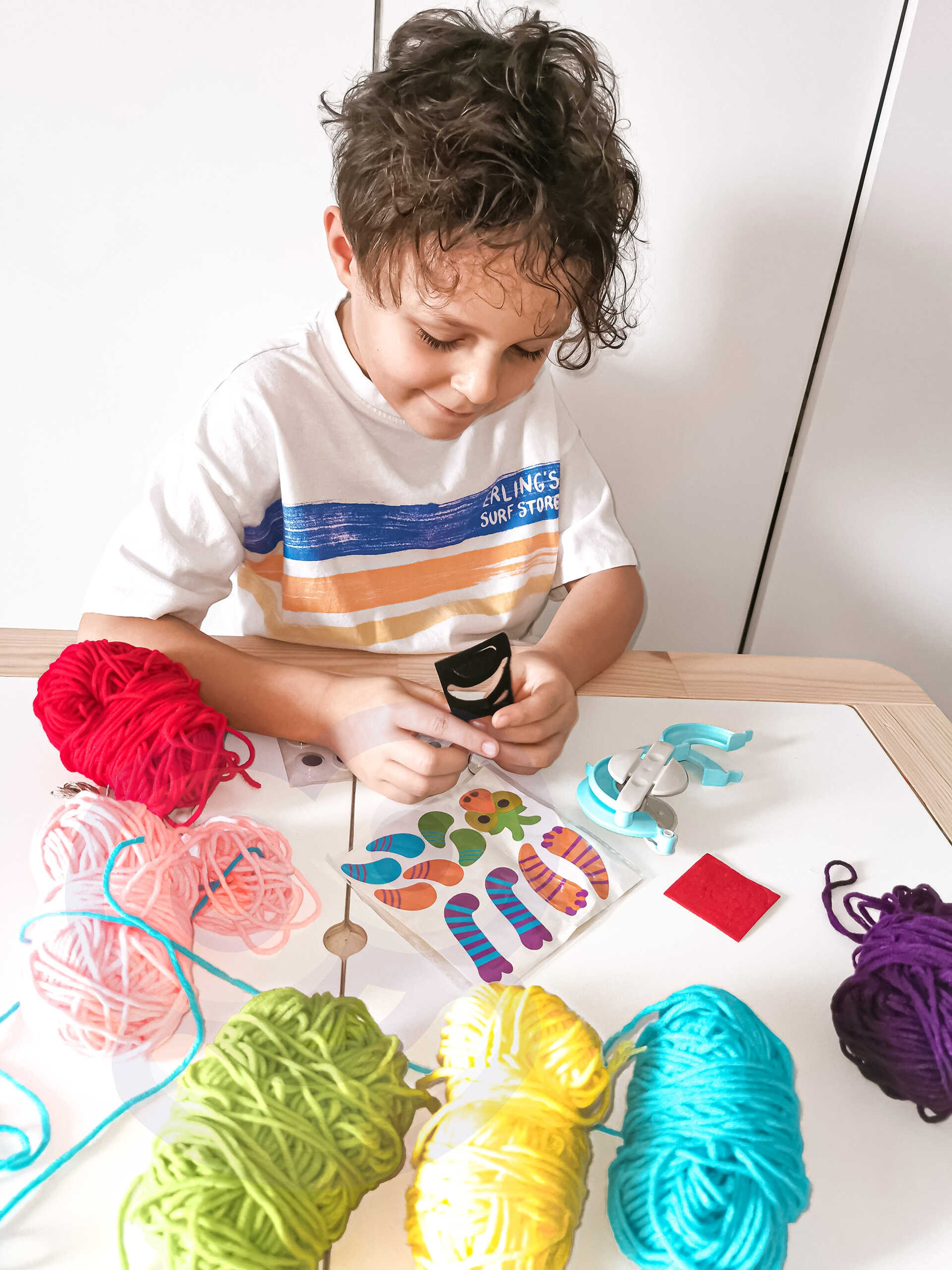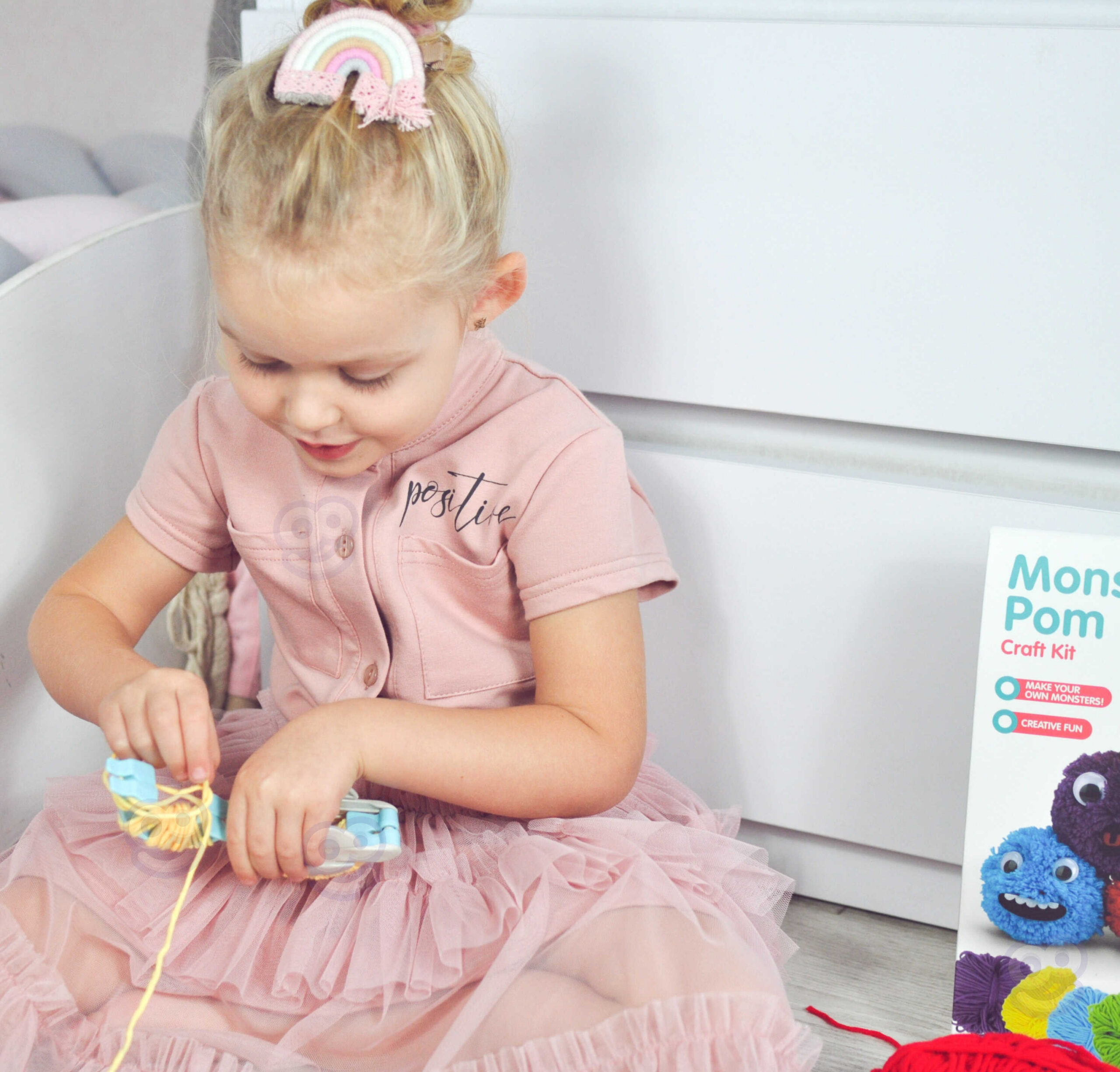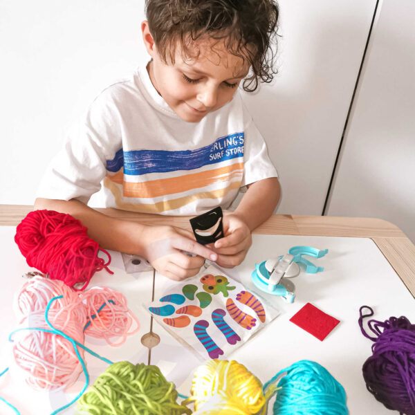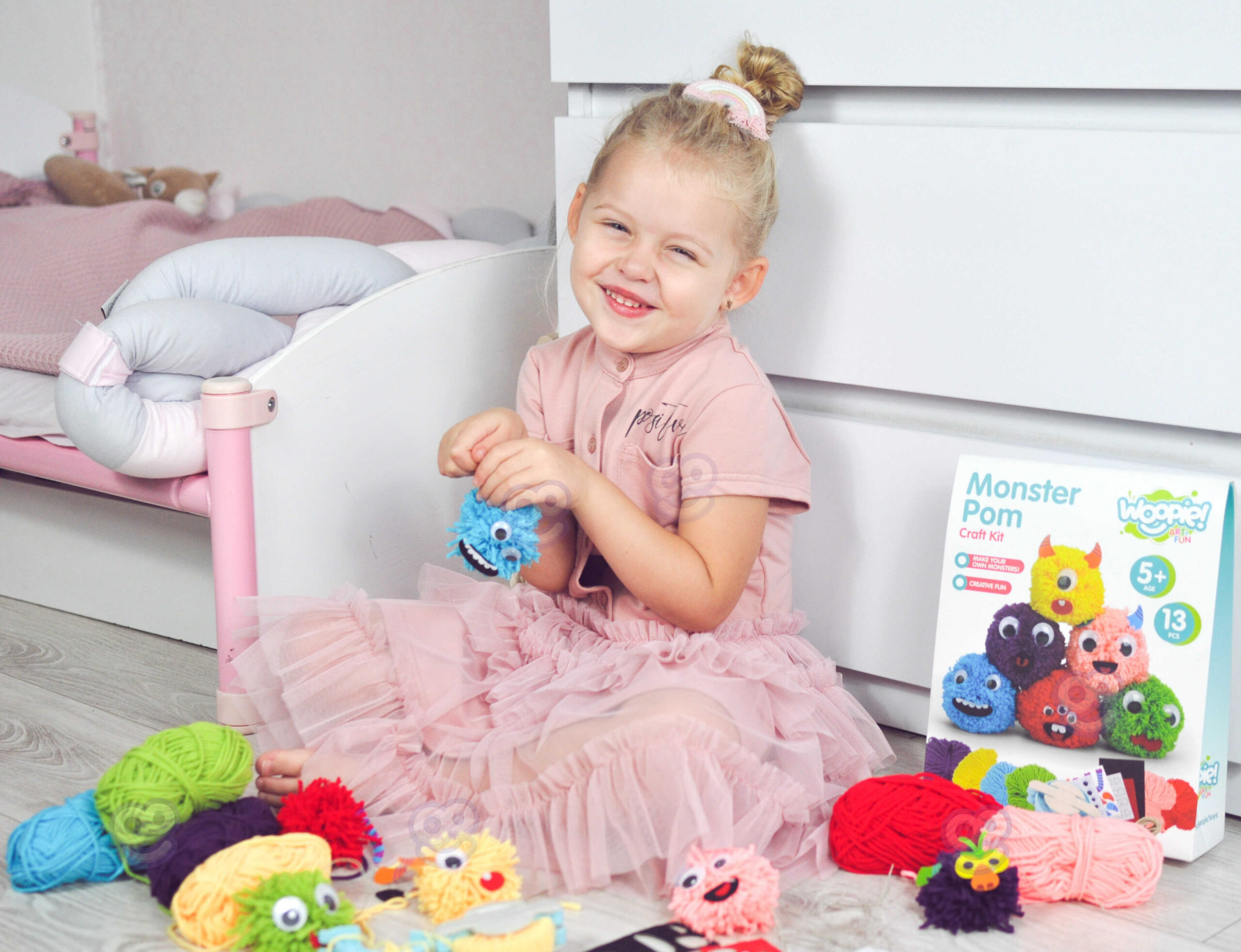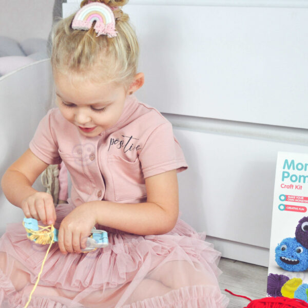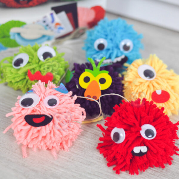 Zestaw Kreatywny Monster Pom od marki WOOPIE z serii ART&FUN dostarczy straszliwą ilość kreatywnej zabawy! Zrób swojego własnego potwora! Ogranicza Cię jedynie Twoja własna wyobraźnia! Zestaw pozwala na stworzenie dowolnego kudłatego potworka za pomocą m.in. specjalnego sprzętu i włóczki oraz zawiera dodatki takie jak oczy czy rogi. Dodatkowo zawiera na 3 kartach aż 21 filcowych elementów (usta, zęby itp.), z których możesz stworzyć niepowtarzalną minę. Żadne dziecko nie powinno mieć problemu ze stworzeniem swojego potworka, ponieważ z tyłu opakowania jest zawarta obrazkowa instrukcja tworzenia. W skrócie zawijamy oba ramiona sprzętu włóczką, następnie przecinamy, wiążemy sznurkiem przez środek, ściągamy sprzęt i mamy gotowe ciało naszego potworka. Następnie dekorujemy potwora i gotowe. przecinamy Zabawy plastyczne dodatkowo rozwijają zdolności manualne u dzieci tzw. „małą motorykę”. Zestaw jest świetnym pomysłem na zabawę w gronie przyjaciół – stworzenie własnych potworków oraz ich historię w zabawie!