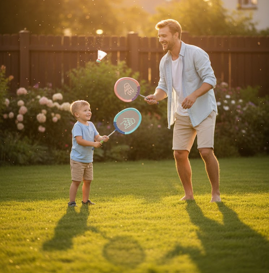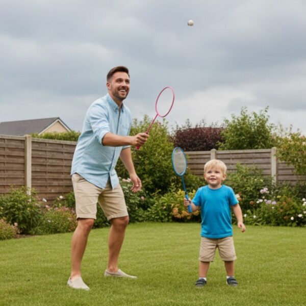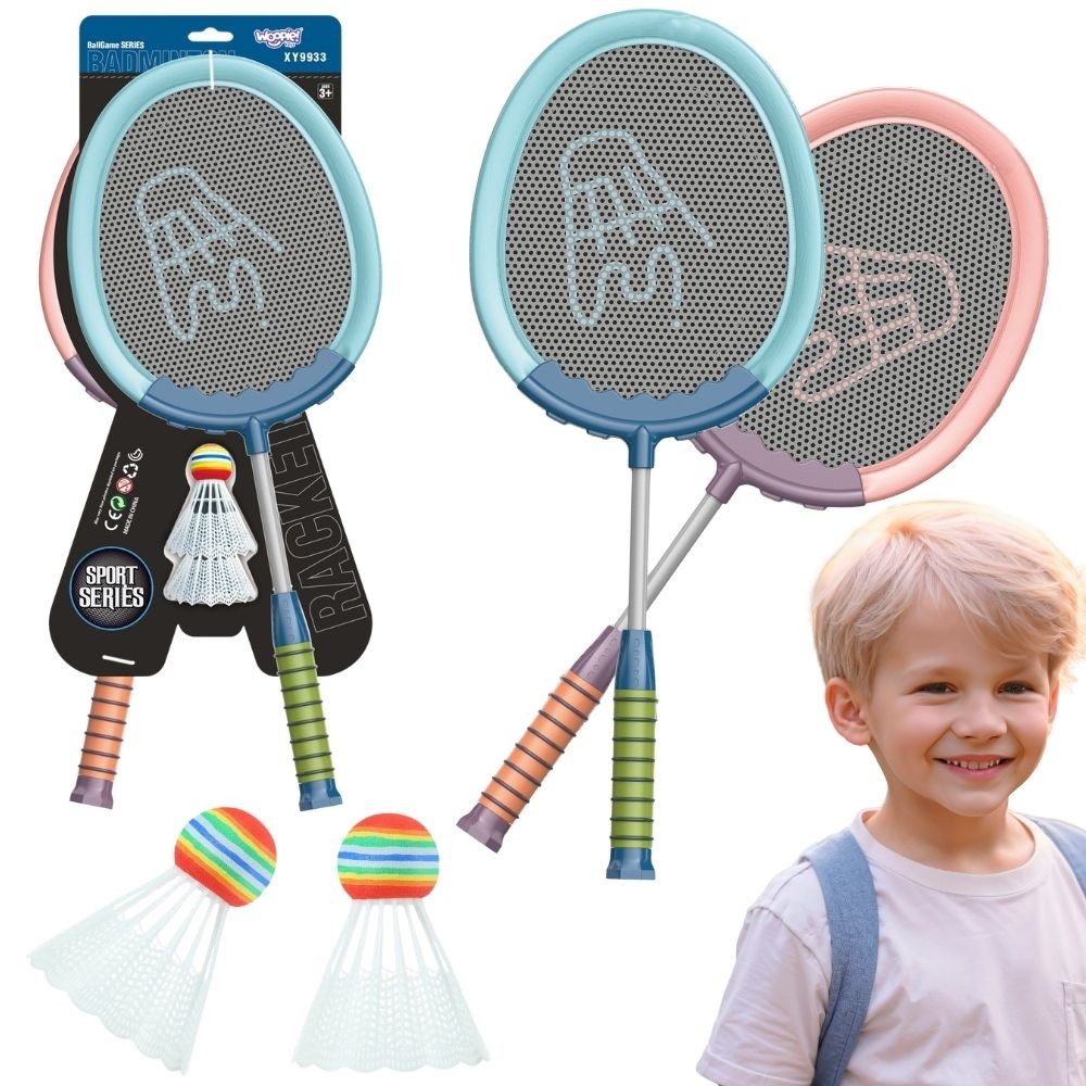 Zestaw Rakietek od marki Woopie z pewnością zachęci dzieci i dorosłych do spędzania czasu aktywnie na świeżym powietrzu. Gra w badmintona rozwija zdolności motoryczne dziecka tzw. „dużą motorykę„. Rakietki posiadają wygodny uchwyt idealny dla rączek dzieci oraz dzięki elastycznej siatce pozwalają na dalsze uderzenia.