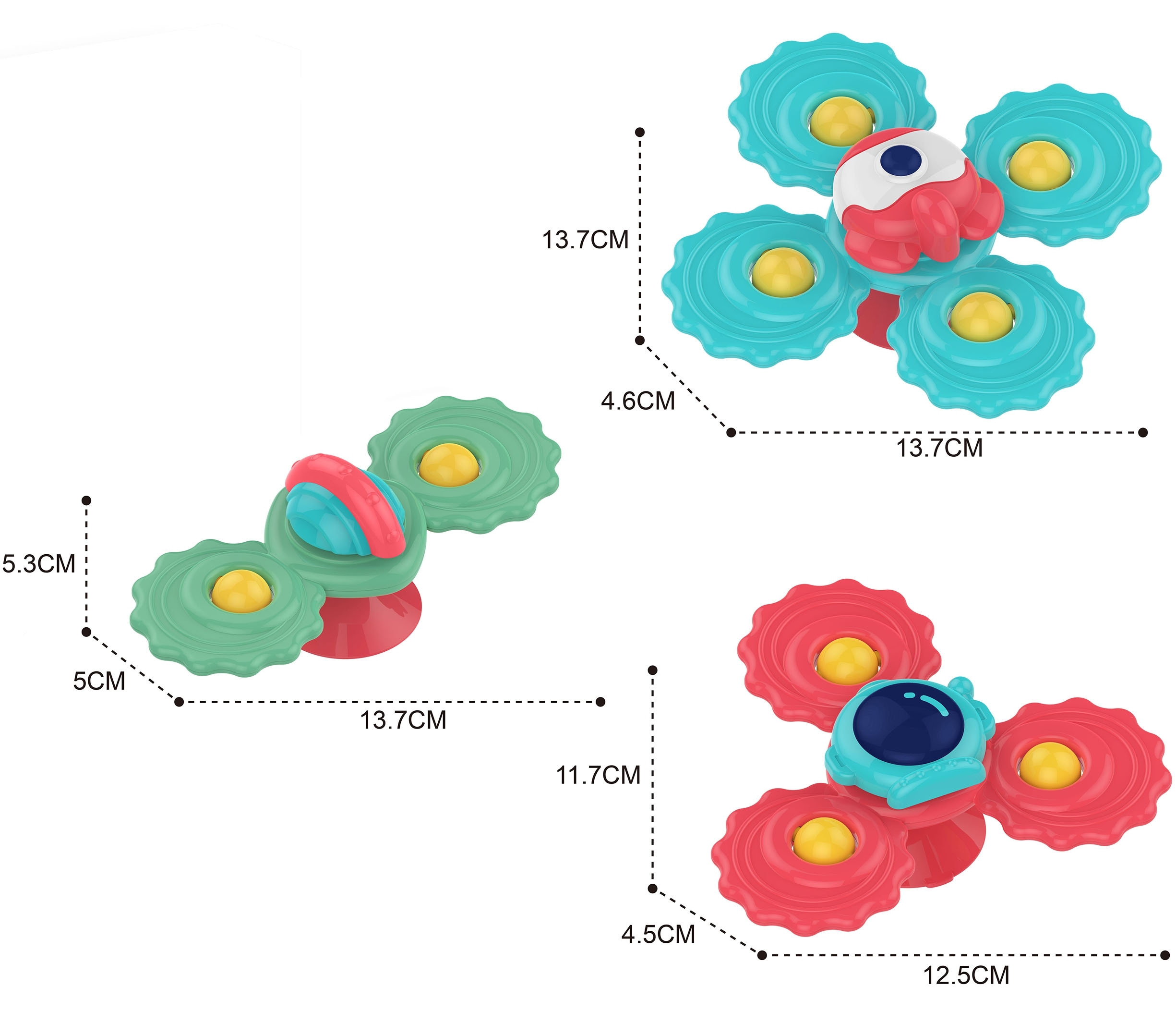 Zestaw 3 wirujących zabawek typu spinner od WOOPIE to interaktywna i kolorowa zabawka dla Twojego dziecka. Każda z zabawek jest inna i posiada odpowiednio 2, 3 lub 4 ramiona. Mogą one być przymocowane do gładkich powierzchni, co dodatkowo zwiększa możliwości zabawy. Wykonane z bezpiecznych materiałów, mogą pełnić funkcję gryzaka dla maluszka. Dzięki różnym wypukłościom i wgłębieniom, doskonale stymulują zmysły oraz umiejętności motoryczne dziecka.