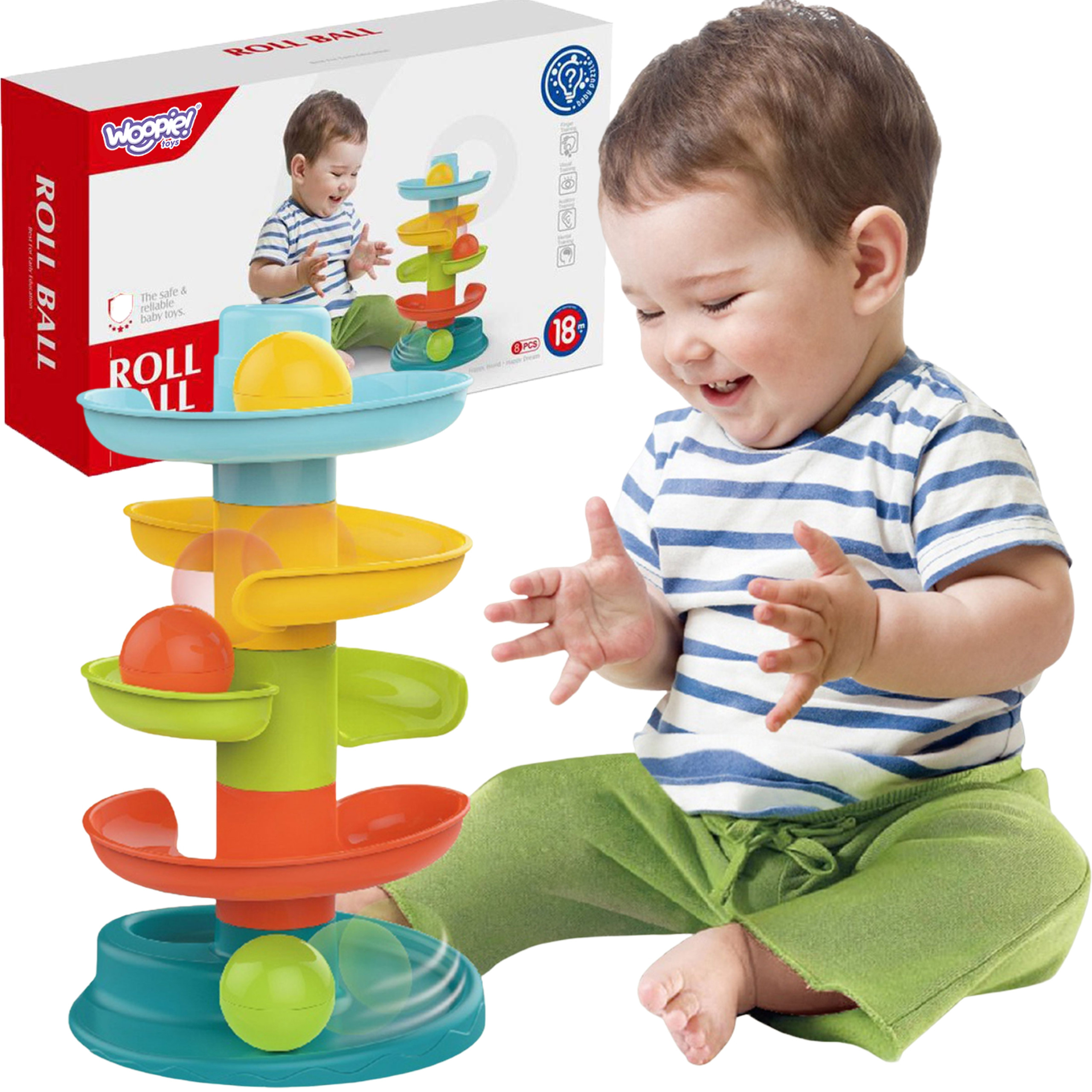 Tor Kulkowy Zestaw Spirala + 3 Kulki od marki Woopie Baby to zabawka, która łączy mnóstwo kolorowej zabawy z nauką i rozwojem! Kolorowa spiralna wieża daje maluchowi radość z obserwowania, jak kulki staczają się w dół, a przyjemne dźwięki dodatkowo angażują zmysły dziecka. Elementy łatwo się łączą, więc tata lub mama mogą wspólnie z maluchem budować tor i eksperymentować z układaniem. To świetna okazja, aby ćwiczyć koordynację wzrokowo ruchową, koncentrację oraz motorykę małych rączek! Idealny prezent zarówno dla chłopca, jak i dziewczynki od 6. miesiąca życia.
