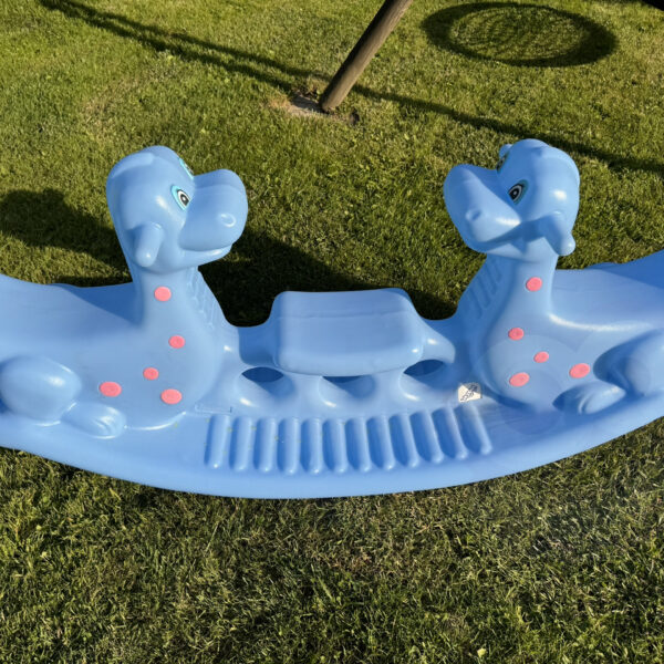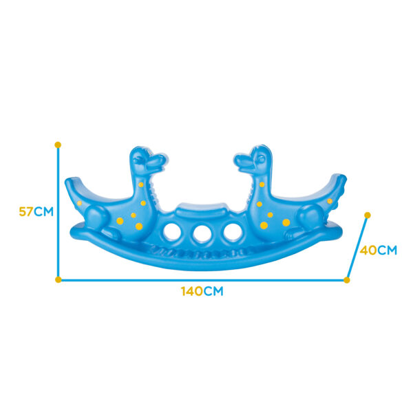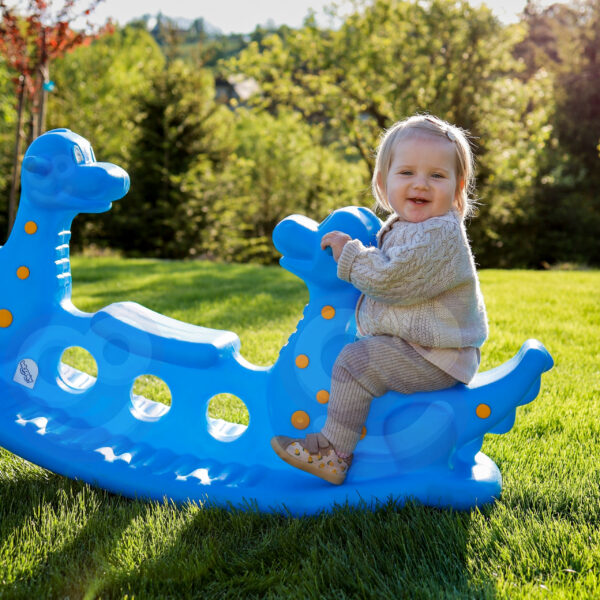 Bujak Dino Wieloosobowy w kolorze niebieskim marki Woopie stanie się najulubieńszym dinozaurem twoich dzieci! Z bujaka może korzystać troje dzieci jednocześnie, a nawet jedno będzie się świetnie bawić! Gdy dwoje dzieci buja się jednocześnie to Dino może spełnić funkcje huśtawki równoważnej i dzieci współpracując mogą się huśtać bez końca. Bujak sam w sobie dostarcza wiele korzyści dla dzieci: bujanie uspokaja dziecko oraz rozwija zdolności motoryczne ciała, co jest idealne dla prawidłowego rozwoju. Dodatkowo dinozaury mogą oddziaływać na wyobraźnie oraz kreatywność Twojego dziecka. Możliwe, że potraktuję go jak swojego przyjaciela, o którego będzie dbać. Z produktu można korzystać zarówno w domu jak, i na zewnątrz!