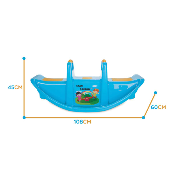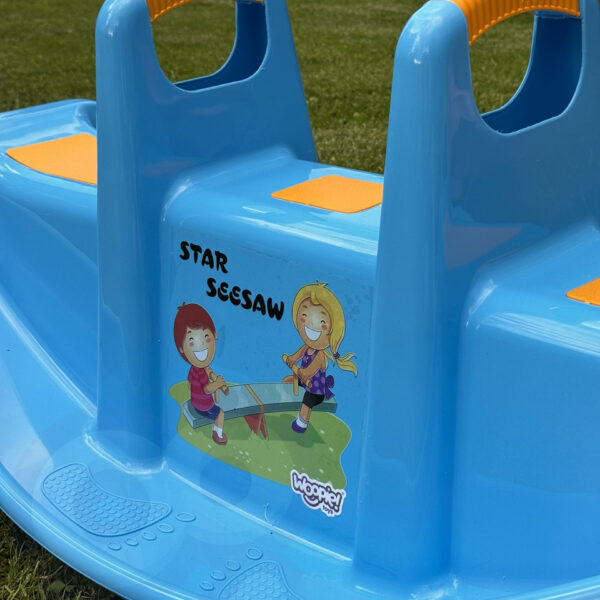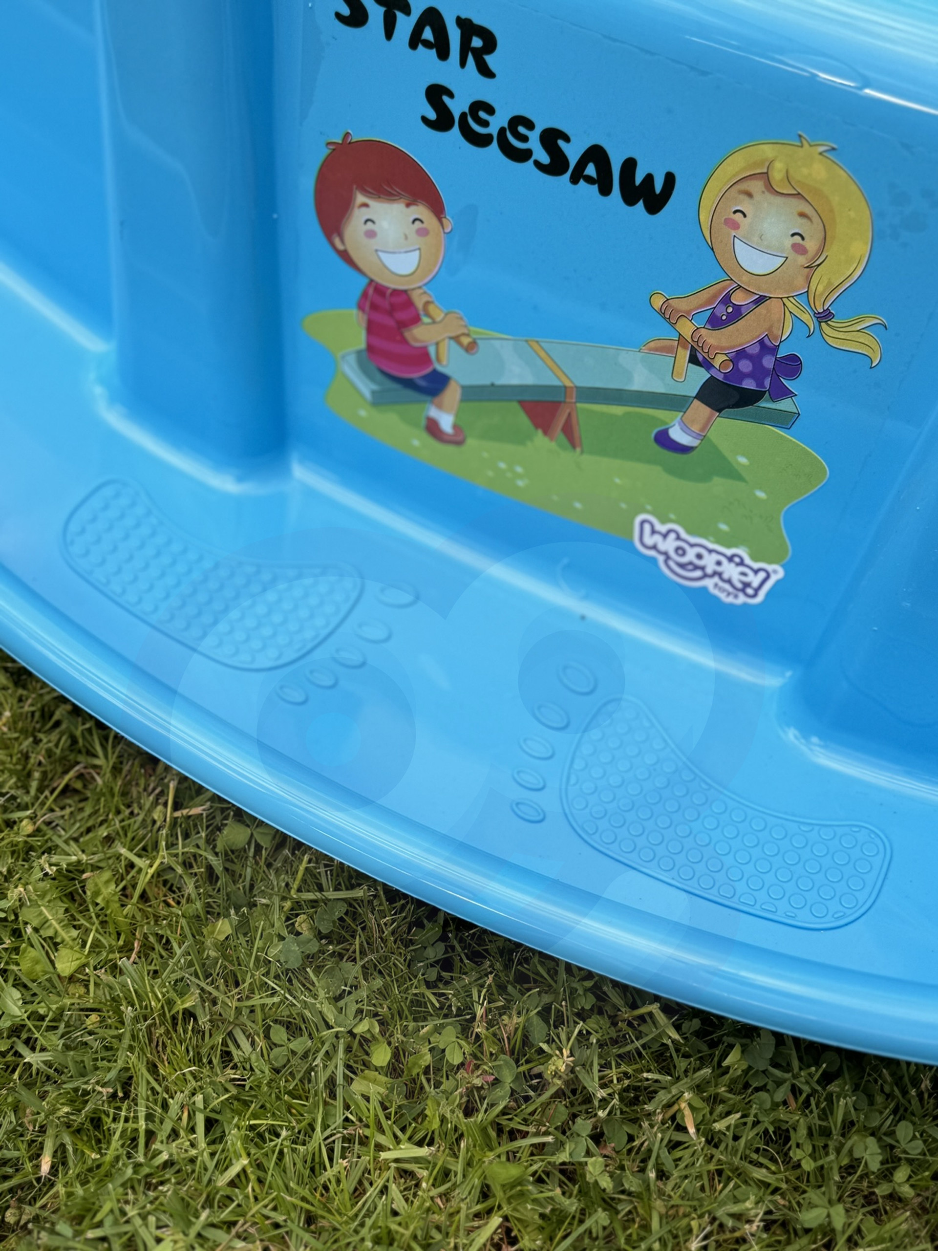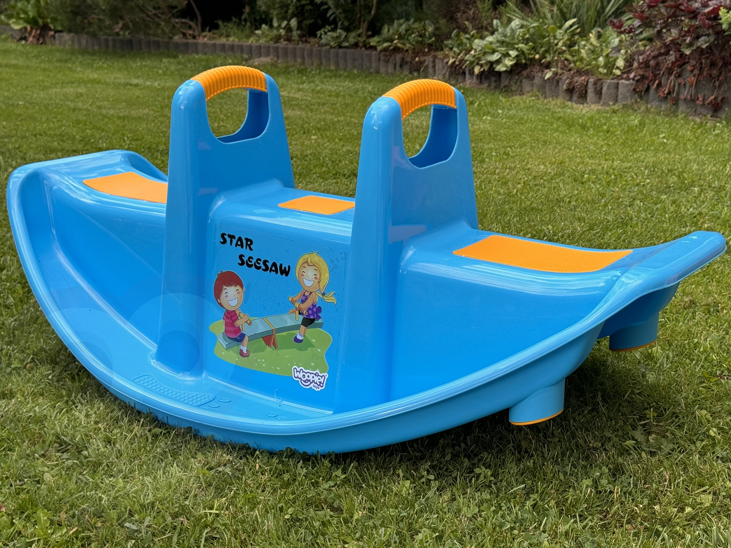 Bujak Wieloosobowy STAR Niebieski marki Woopie jest prawdziwą gwiazdą wśród dzieci! Z bujaka może korzystać maksymalnie troje dzieci jednocześnie, a nawet jedno będzie się świetnie bawić. Gdy dzieci bujają się we dwójkę to dodatkowo rozwija u nich zdolności do współpracy. Bujaczek posiada specjalne nakładki antypoślizgowe na siedzisko oraz chroniące rączki. Bujak sam w sobie dostarcza wiele korzyści dla dzieci. Bujanie samo w sobie uspokaja dziecko oraz rozwija zdolności motoryczne ciała, co jest idealne dla prawidłowego rozwoju. Z huśtawki można korzystać zarówno w domu jak, i na zewnątrz!