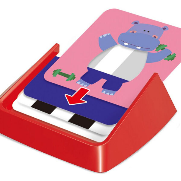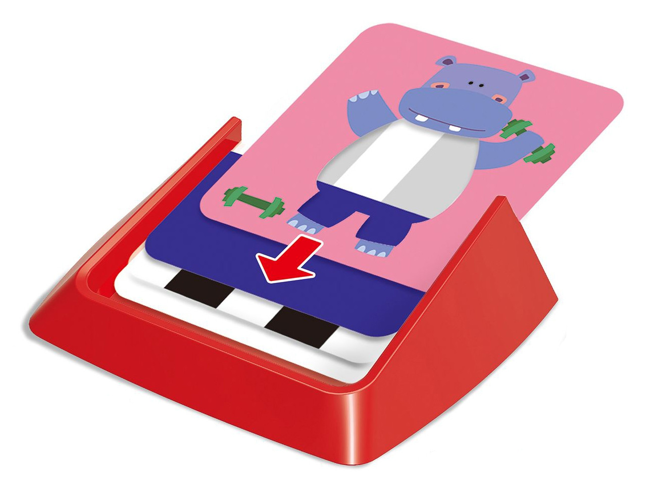 - Losowo wybierz kartę wyzwania i odpowiedni model – kotka, hipopotama, królika lub dinozaura