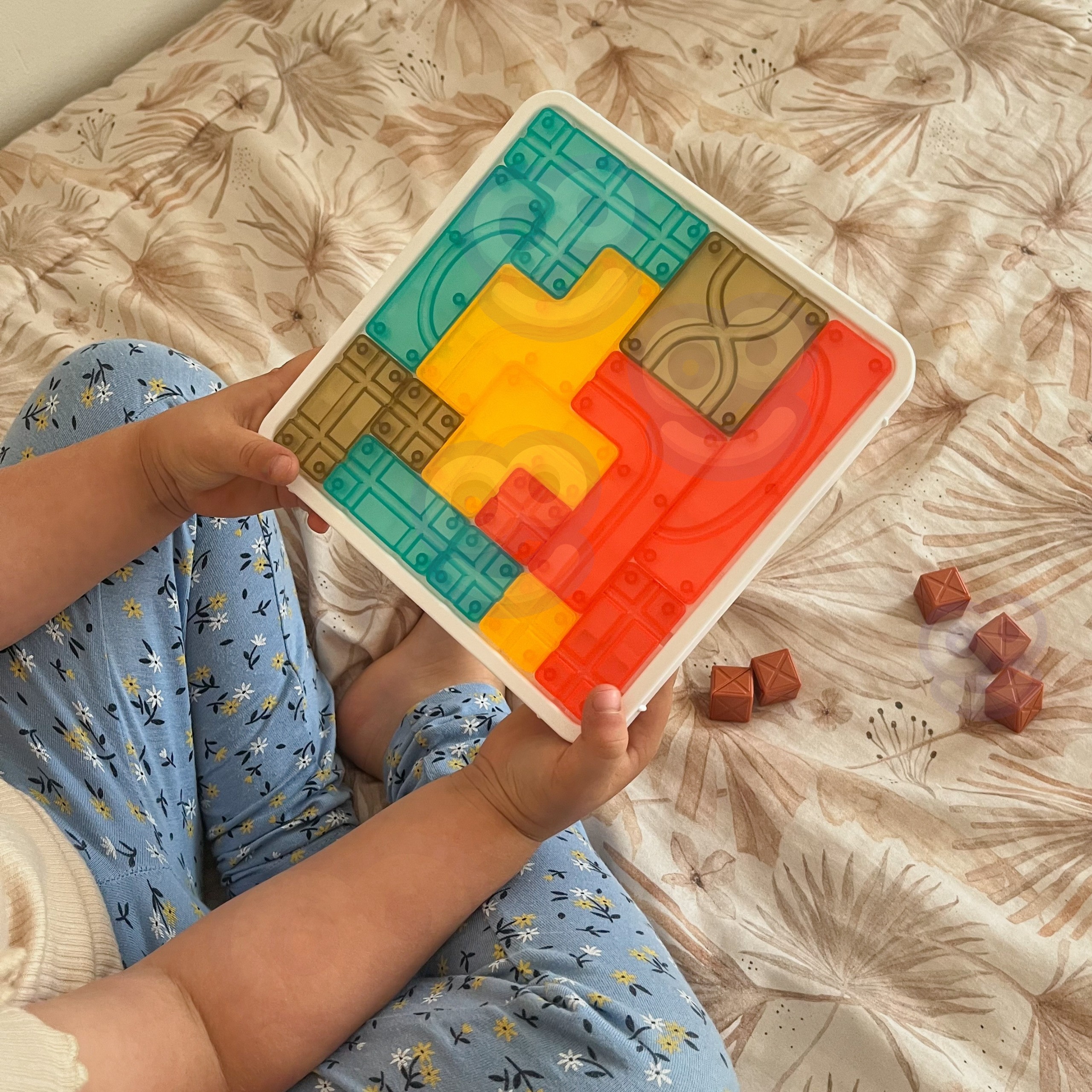- – Kolorowe, półprzezroczyste płytki o różnych kształtach, inspirowane układanką Tetris