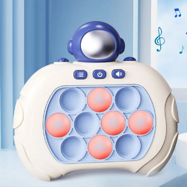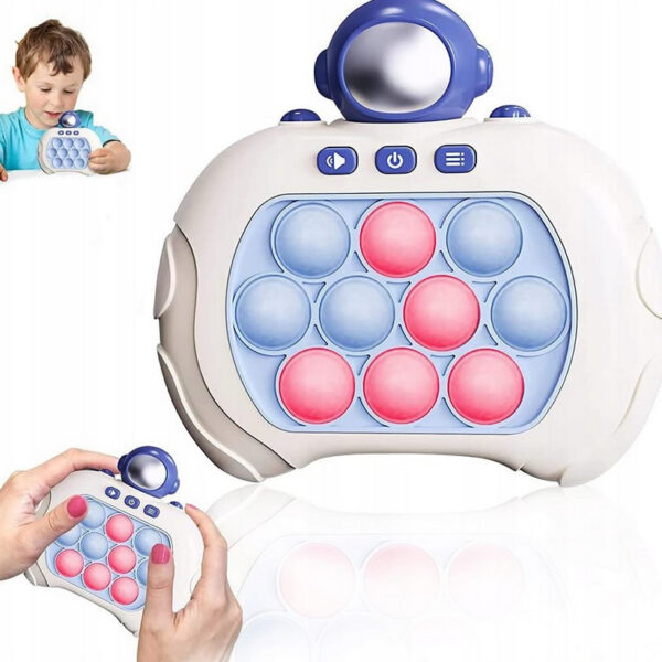 Gra POP IT Astronauta to zabawka antystresowa, która sprawdzi się już dla najmłodszych. Gra wydaje radosne dźwięki, które zachęcają dzieci do zabawy i urozmaicają rozgrywkę. Zabawka jest niewielka więc, sprawia, że możemy zabrać ją ze sobą. Pop It sprawia frajdę dzieciom oraz dorosłym, którzy chętnie po nią sięgają. Rozwija umysł, zdolności manualne, koordynację wzrokowo-ruchową oraz trenuje spostrzegawczość i pomaga w walce ze stresem.