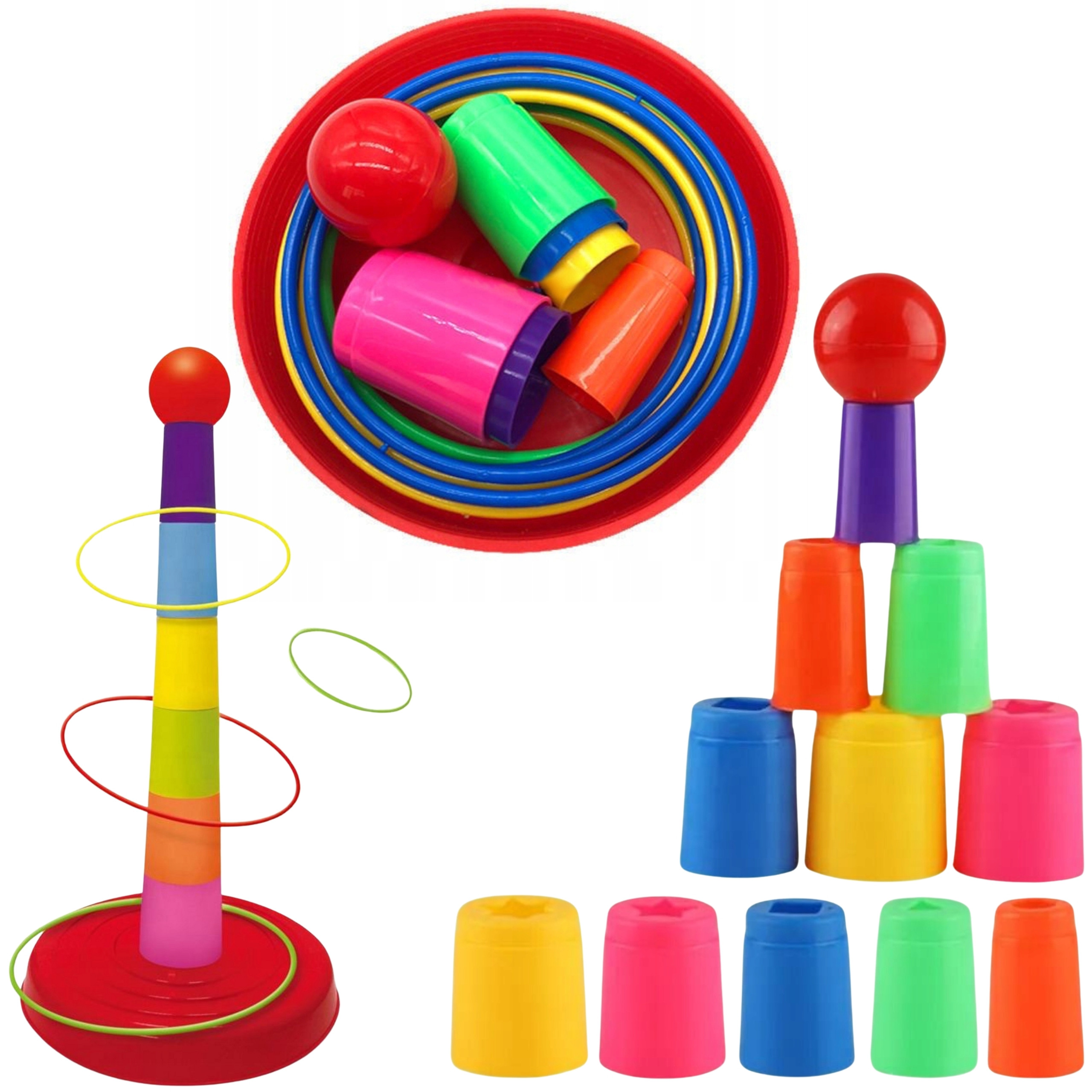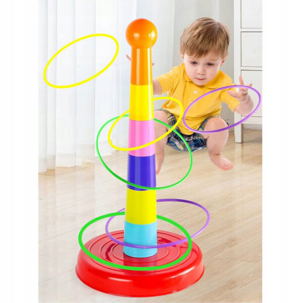 - – Żywe barwy słupków i obręczy przyciągają uwagę i zachęcają do gry