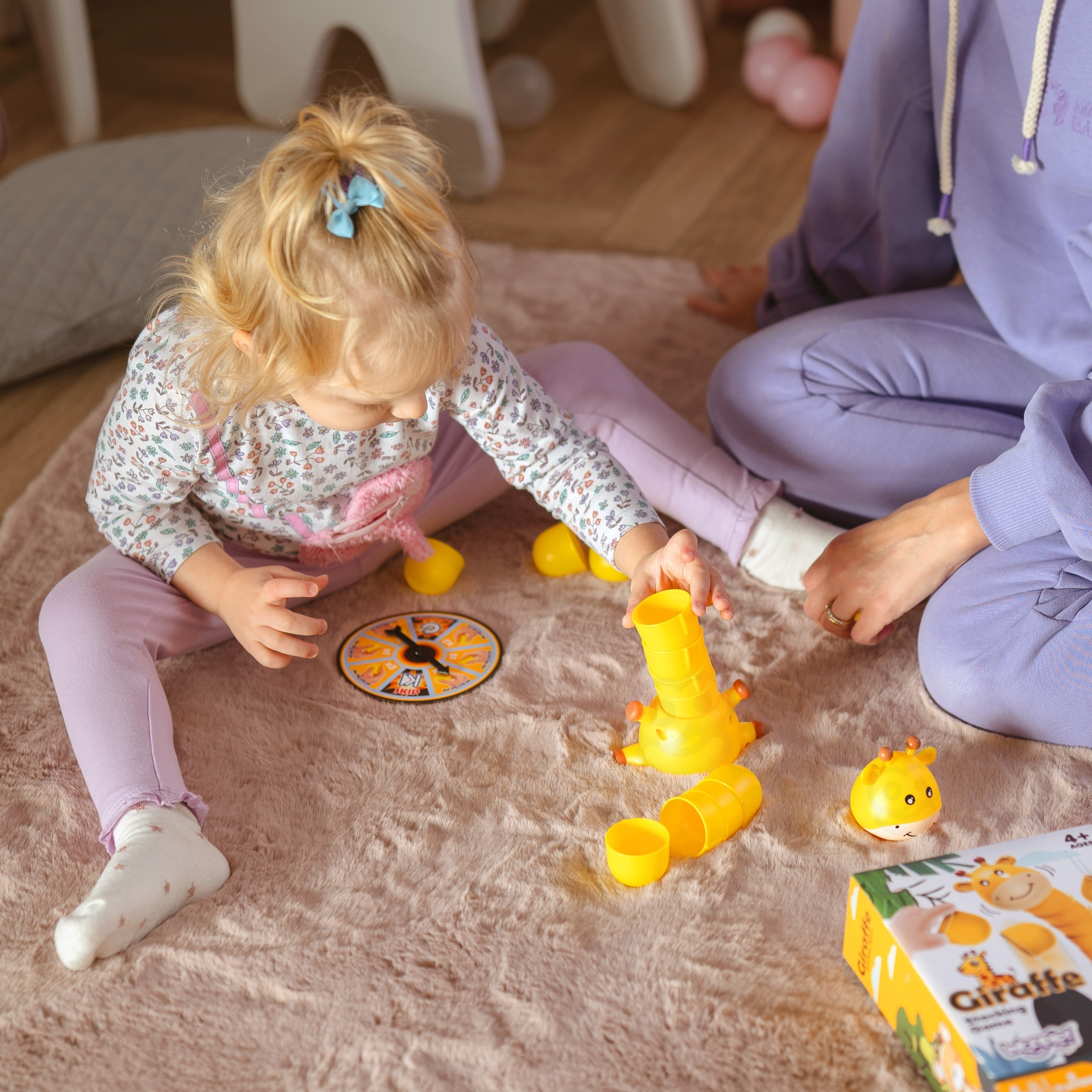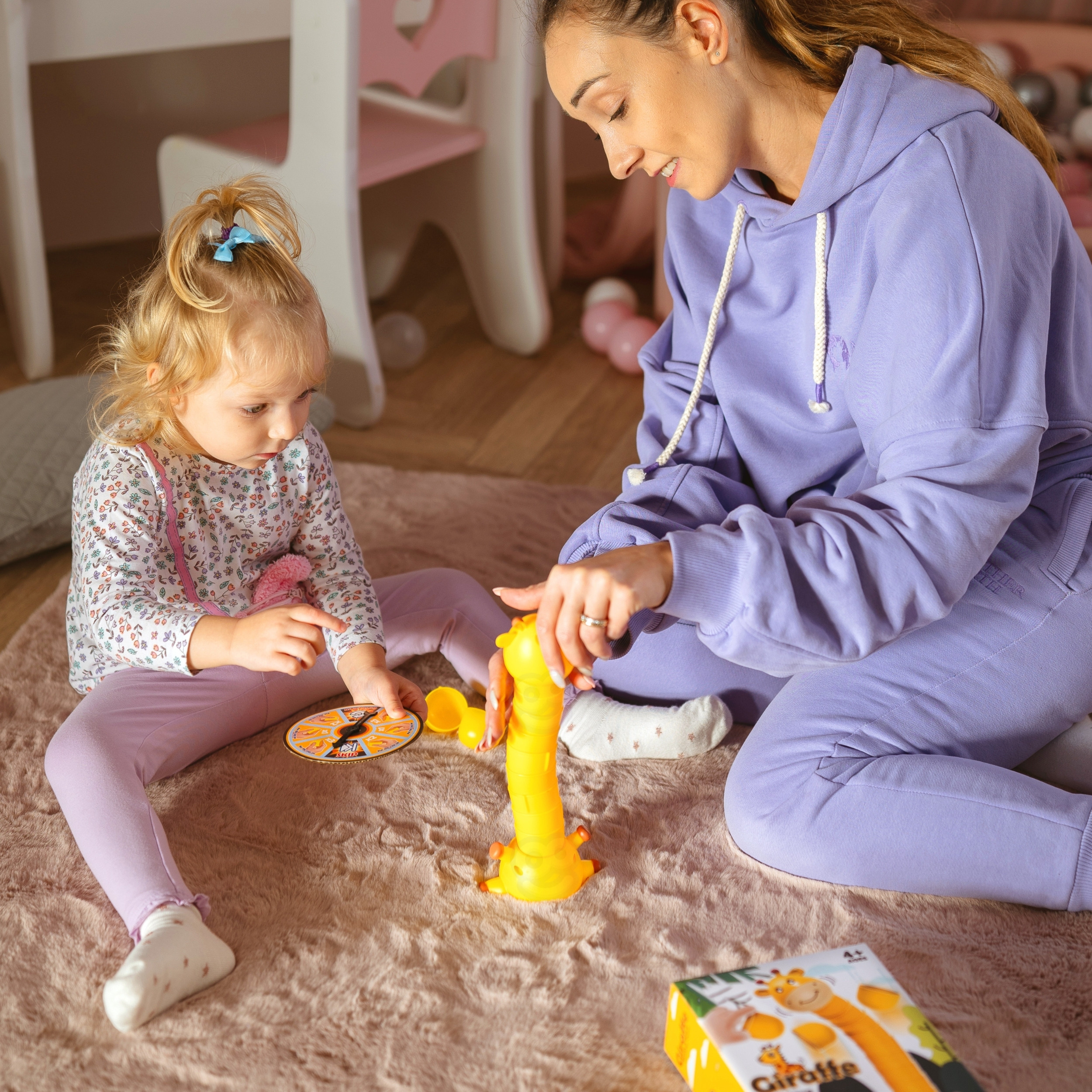 Gra polega na ułożeniu jak najwyższej wieży tym samym szyj żyrafki. Koło fortuny decyduje o każdym następnym kroku, ile kubeczków trzeba dołożyć do szyj. Gra kończy się gry jeden z graczy przewróci żyrafkę.