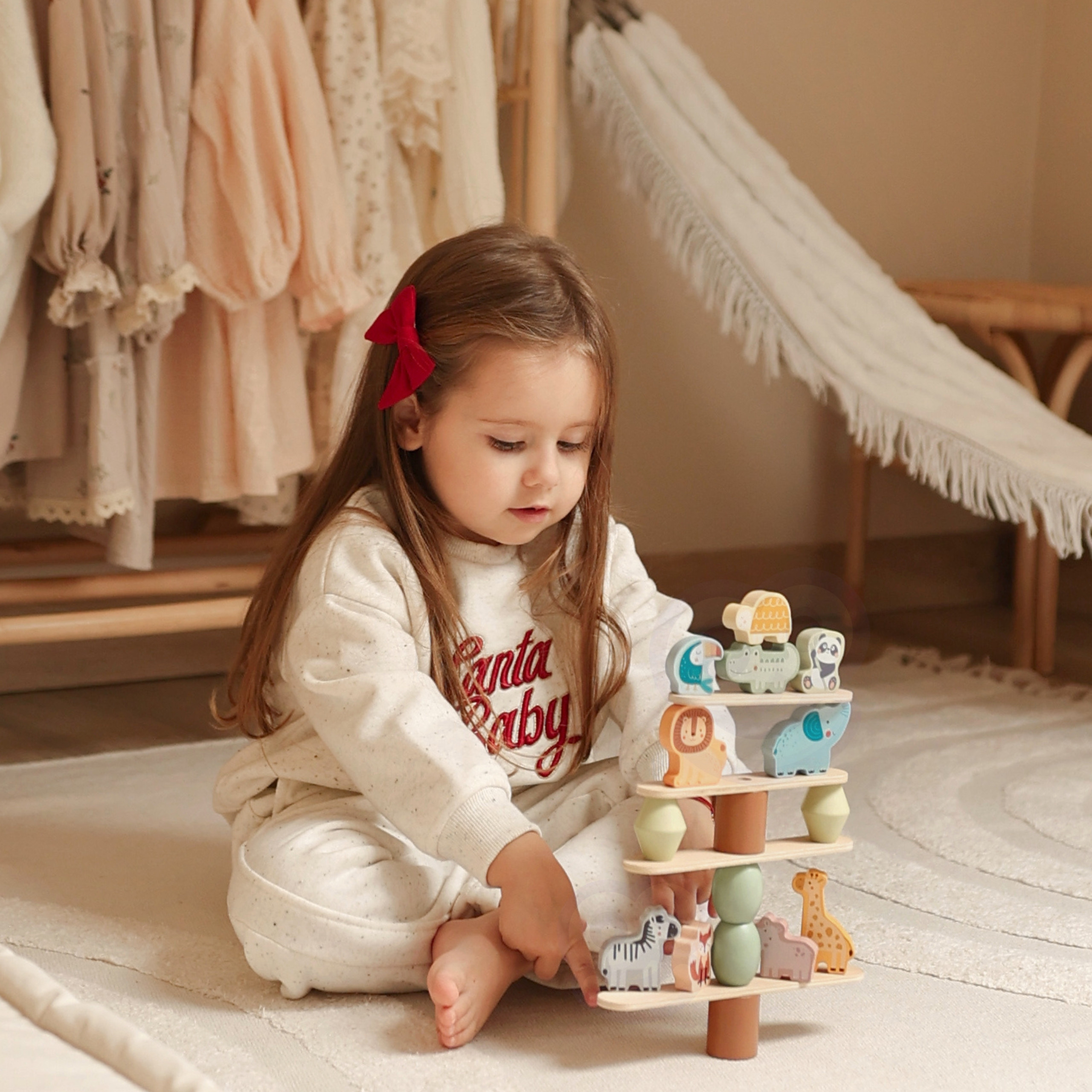 WOOPIE GREEN Balansujące Drewniane Zwierzęta Układanka w Stosy FSC