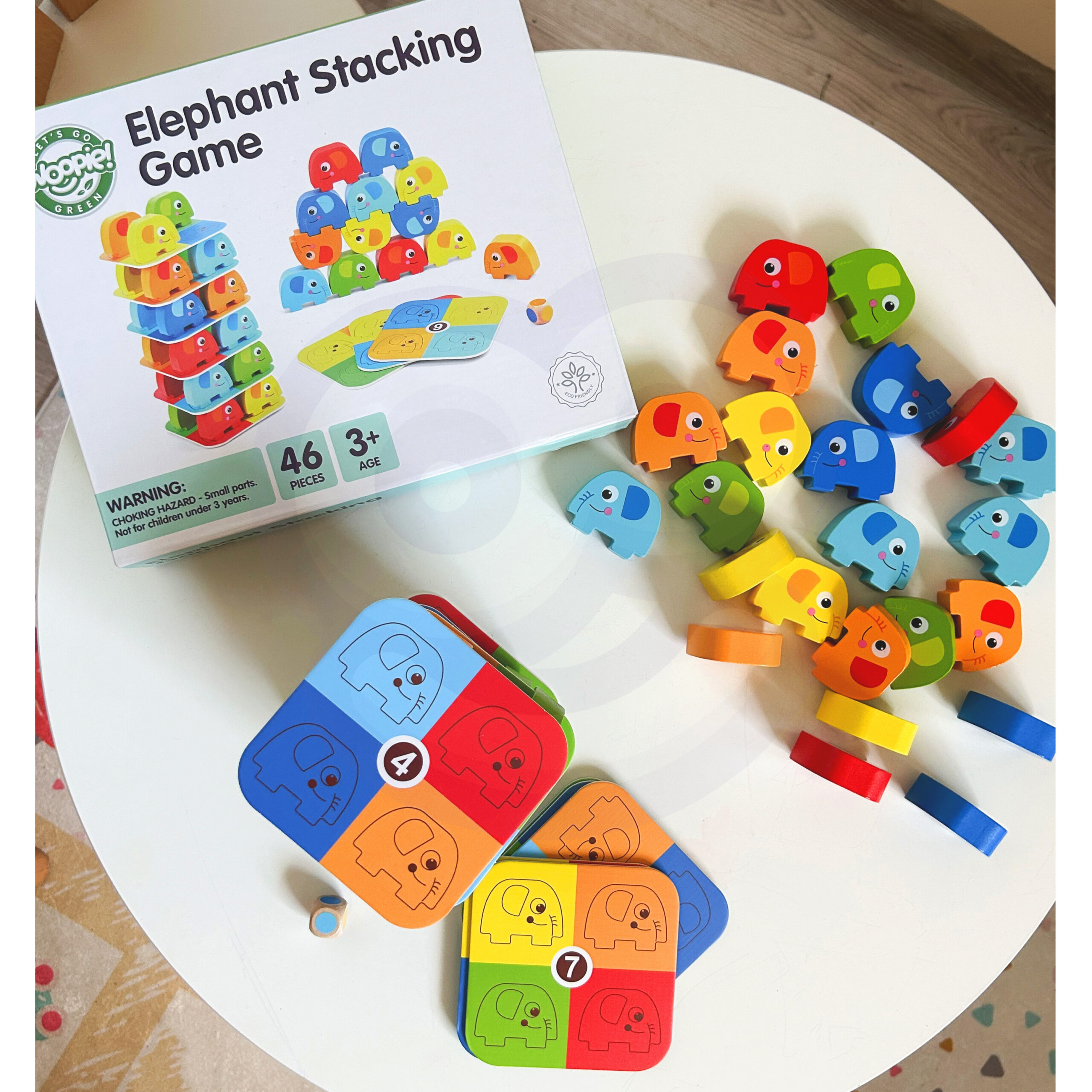 Słonik na Słoniku od marki WOOPIE GREEN to wyjątkowa gra zręcznościowa, która zapewni mnóstwo śmiechu i emocji! Zestaw składa się z 46 kolorowych, drewnianych elementów – w tym kostki i kart – dzięki czemu można bawić się na różne sposoby: układać słonie w wieżę lub rozegrać emocjonującą rundę w stylu Jenga. Wyraziste kolory i uroczy design przyciągają uwagę dzieci, a zaokrąglone kształty sprawiają, że zabawa jest w 100% bezpieczna już od 3 roku życia.