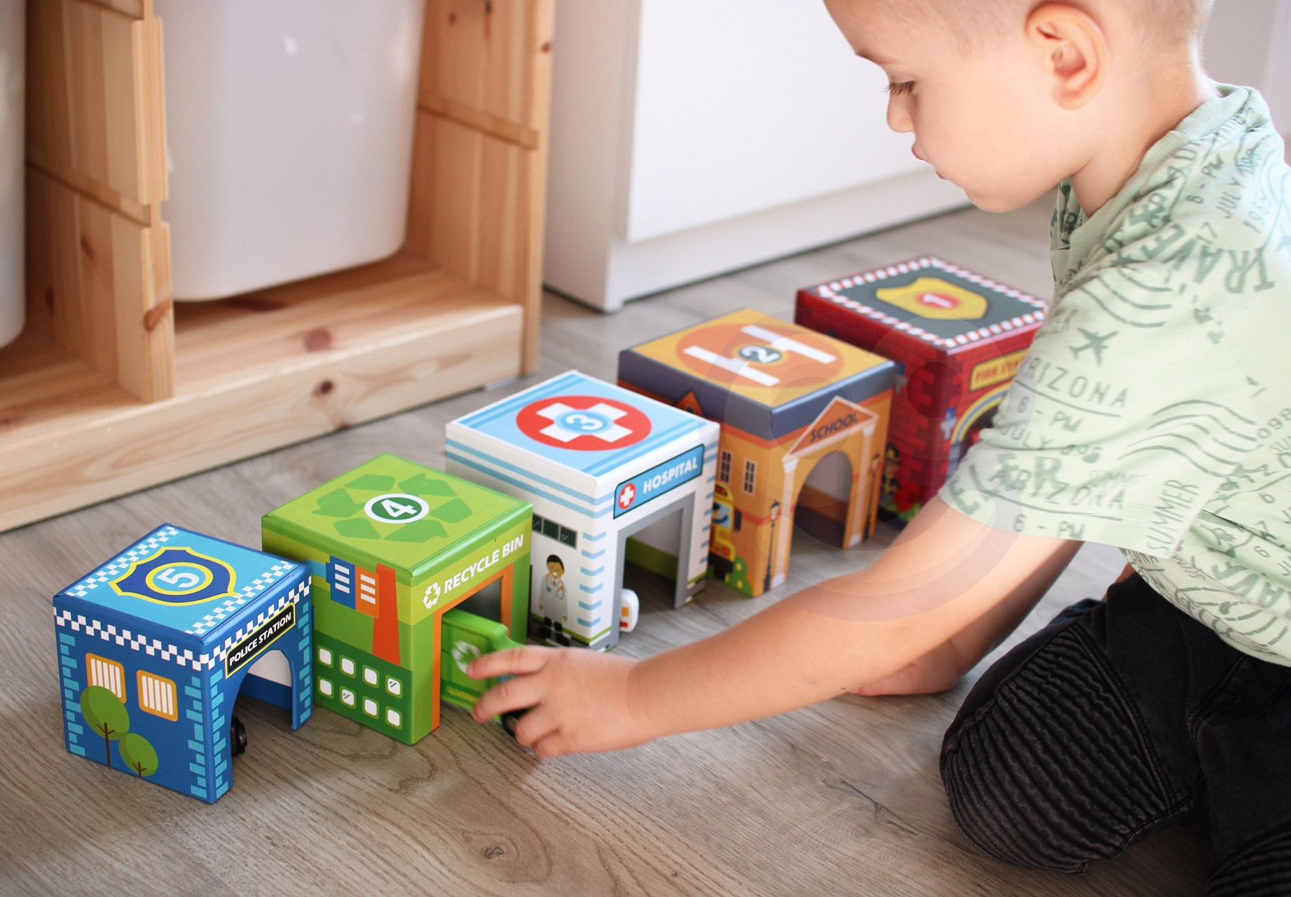 Układanka Miasto od marki WOOPIE z serii GREEN to wspaniała alternatywa dla tradycyjnych klocków i puzzli. Kolorowe kostki z ilustracjami budynków i numeracją wprowadzają dziecko w świat liczb, instytucji miejskich i pojazdów, oferując zabawę, która jednocześnie uczy i rozwija. Każda kostka pasuje do pozostałych niczym element miejskiej układanki – można z nich budować wieże, dopasowywać pojazdy do odpowiednich budynków, a nawet wykorzystać je jako pojemniki na drobiazgi.