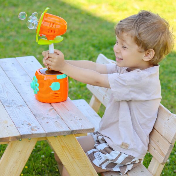 - – Automatyczna produkcja baniek – słonecznik sam wypuszcza mnóstwo baniek, tworząc magiczną atmosferę.