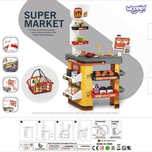 Nowoczesny Supermarket od marki WOOPIE sprawi, że twoje dziecko poczuje się jak za kasą prawdziwego sklepu! Dbałość o każdy szczegół zapewni BEZPIECZNĄ i wciągającą zabawę dla dzieci. Rozpocznij swoją ekscytującą podróż w świat handlu, używając skanera, który ożywia każdy zakup. Ta interaktywna zabawka nie tylko uczy, ale również dostarcza niezapomnianych chwil rozrywki. Dzięki kasie fiskalnej dziecko może odgrywać rolę kasjera, nabywając umiejętności matematyczne i rozwijając kreatywność.