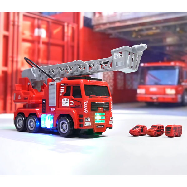 Samojeżdżący wóz strażacki to doskonała zabawka, która pozwoli każdemu małemu miłośnikowi pojazdów ratunkowych poczuć się jak prawdziwy bohater. Zabawka została zaprojektowana z dbałością o najmniejsze detale, które wiernie odwzorowują prawdziwy pojazd strażacki. Model wyposażony jest w wysuwającą się drabinę, oraz armatkę wodną. Po włączeniu pojazd zaczyna jeździć po podłodze wymachując drabiną z armatką wodną na boki, okazjonalnie wystrzeliwując z przodu pojazdu mini pojazdy straży pożarnej