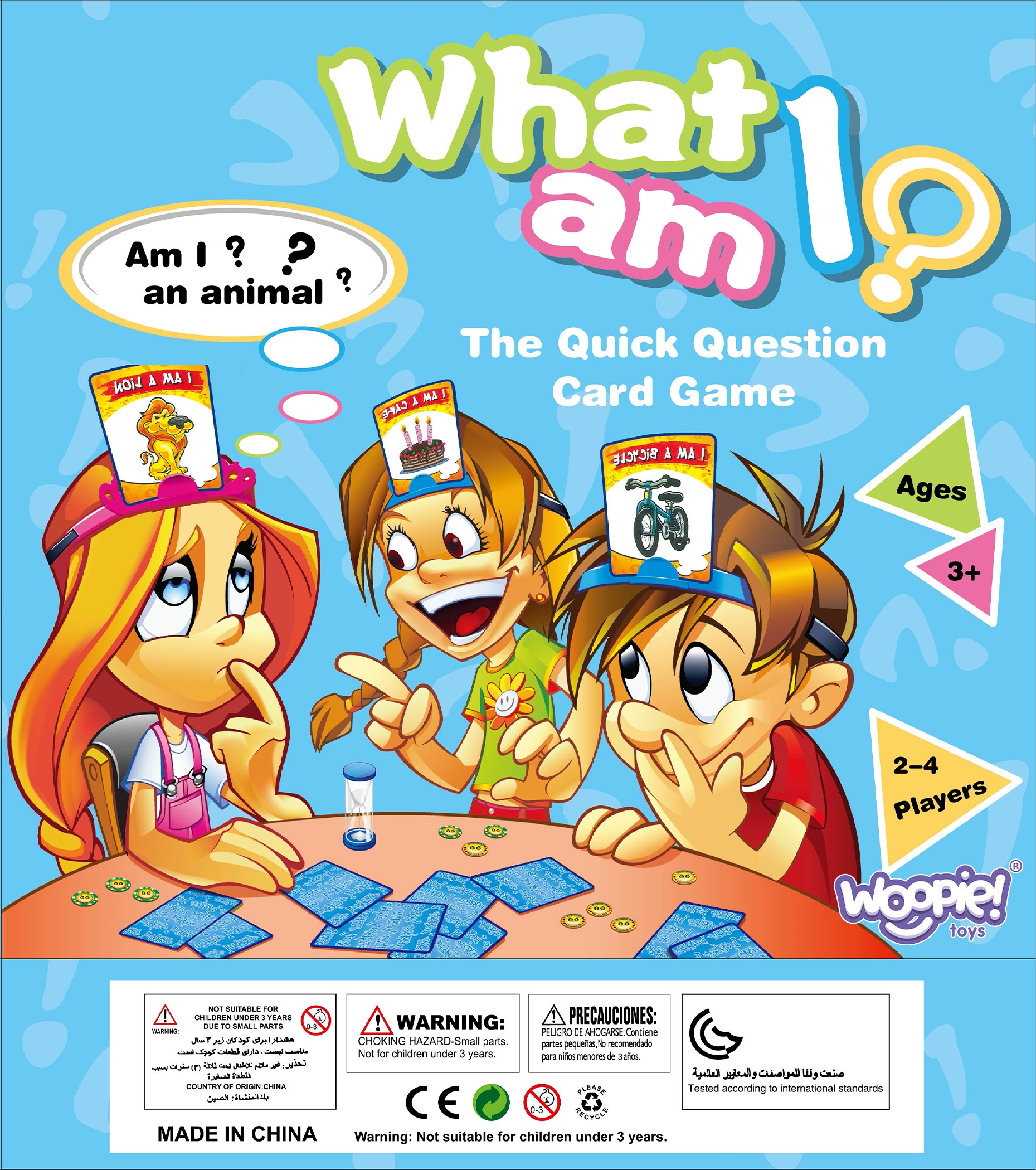 Gra rozrywkowa Kim jestem? od marki Woopie to zabawa na długie godziny. Jest to prosta gra w której udział bierze od 2 do 4 graczy. Każdy gracz losuje po 1 karcie i umieszcza ją na głowie osobie obok. Zadawaj pytania pozostałym uczestnikom, na które usłyszysz odpowiedzi tak lub nie i odgadnij kim jesteś zanim upłynie czas odmierzany przez piasek w klepsydrze. Kto zgadnie i odda jak najwięcej żetonów ten wygrywa. Zabawa pomaga w poszerzaniu zasobu słów oraz rozwija umiejętność myślenia przyczynowo-skutkowego. Świetna zabawa na imprezach a estetyczne opakowanie jest idealne na prezent.