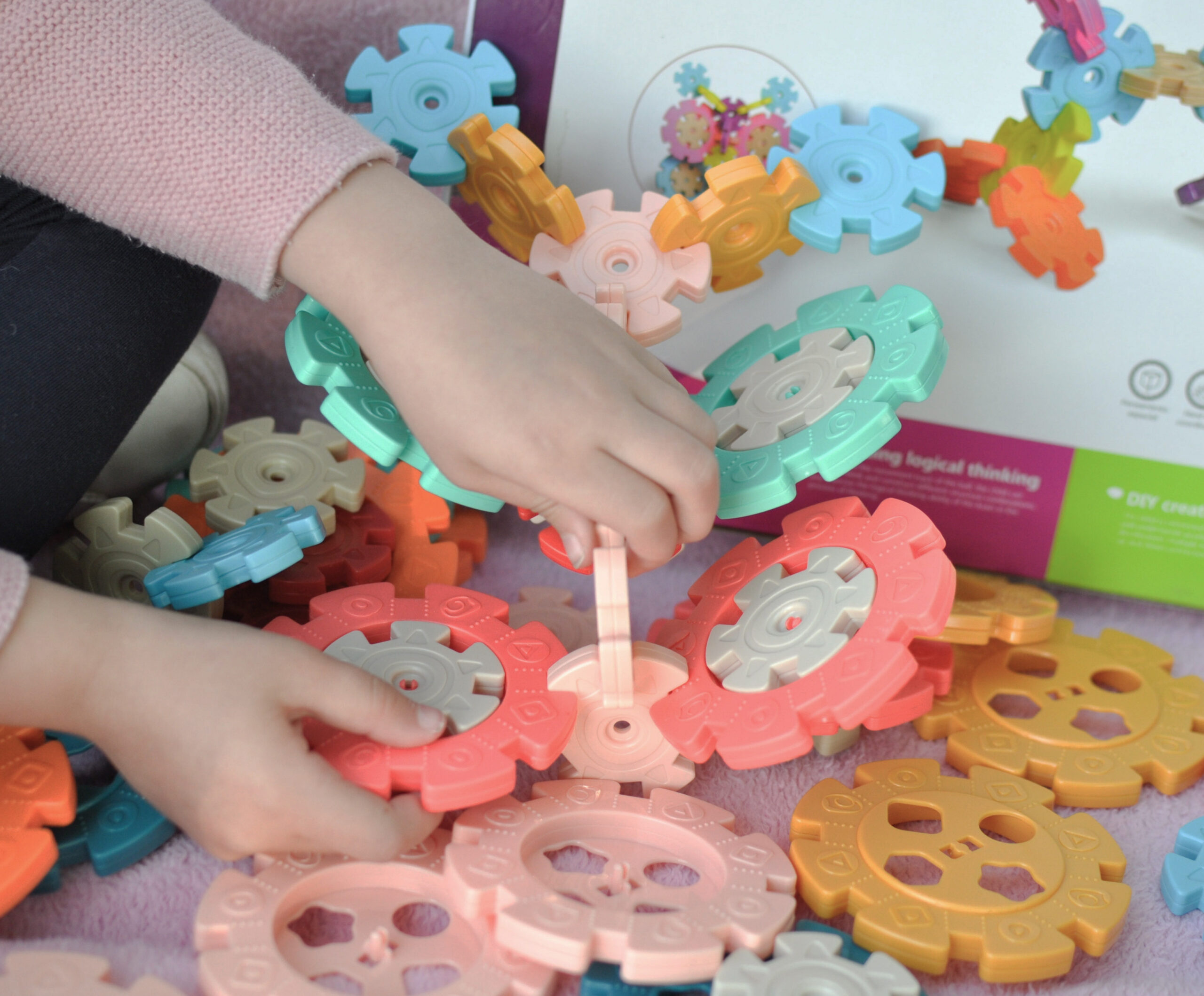 - – klocki posiadają w sobie kuleczki, które wydają dźwięk charakterystyczny do grzechotania,