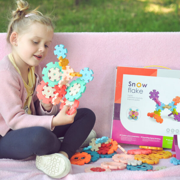 Klocki Konstrukcyjne Wafle od marki WOOPIE zwrócą uwagę i zafascynują Twoje dziecko. Kolorowe elementy przypominają wyglądem płatki śniegu. Klocki w bardzo łatwy sposób łączą się ze sobą, a ze względu na swoją budowę i sposób łączenia można z nich tworzyć ciekawe trójwymiarowe konstrukcje. Zastosowane otwory w śnieżynkach pozwalają na łączenie ich pod skosem, a nie tylko prostopadle. Zestaw zawiera 52 elementy: w tym 18 dużych i 34 małych klocków. Samo budowanie konstrukcji rozwinie u dziecka logiczne myślenie, wyobraźnie, kreatywność oraz pomoże skoncentrować się podczas tworzenia. Przez układanie klocków dziecko poznaje kształty i kolory oraz ćwiczy zdolności manualne tzw. motorykę małą.