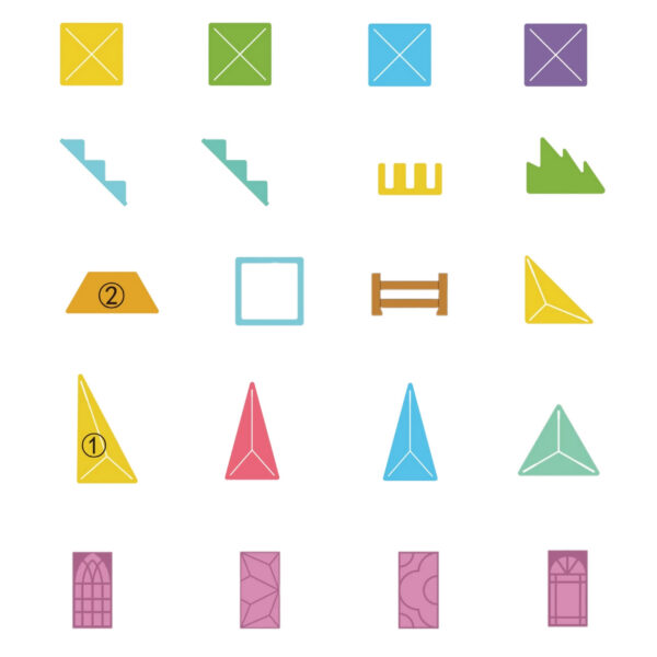 - – 47 magnetycznych klocków (w tym figurki plotki, schody)