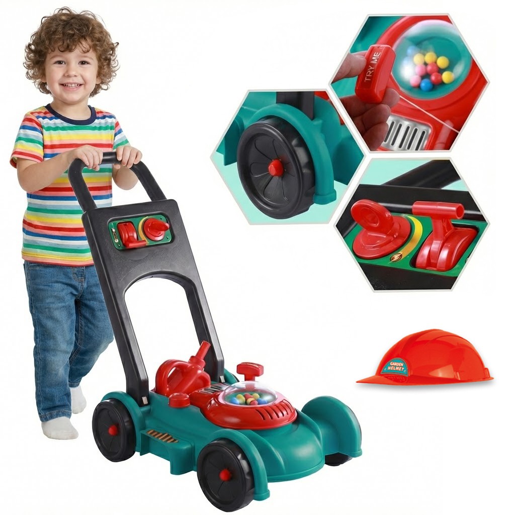 Udana zabawa na świeżym powietrzu może być jeszcze bardziej ciekawa i atrakcyjna, dzięki zabawkowej kosiarce. Zabawka nie tylko nauczy dziecko, jak dbać o trawnik, ale rozweseli najmłodszych i wywoła szczery uśmiech dzięki kolorowym kuleczkom, które grzechoczą podczas jazdy. Kosiarka posiada koła, które z łatwością będą pokonywać wyznaczoną przez dziecko trasę. Idealny zestaw do naśladowania swojego rodzica!
