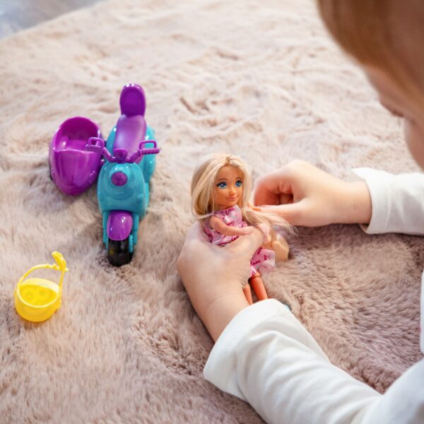 - – Lalka z akcesoriami – skuter, piesek, kask