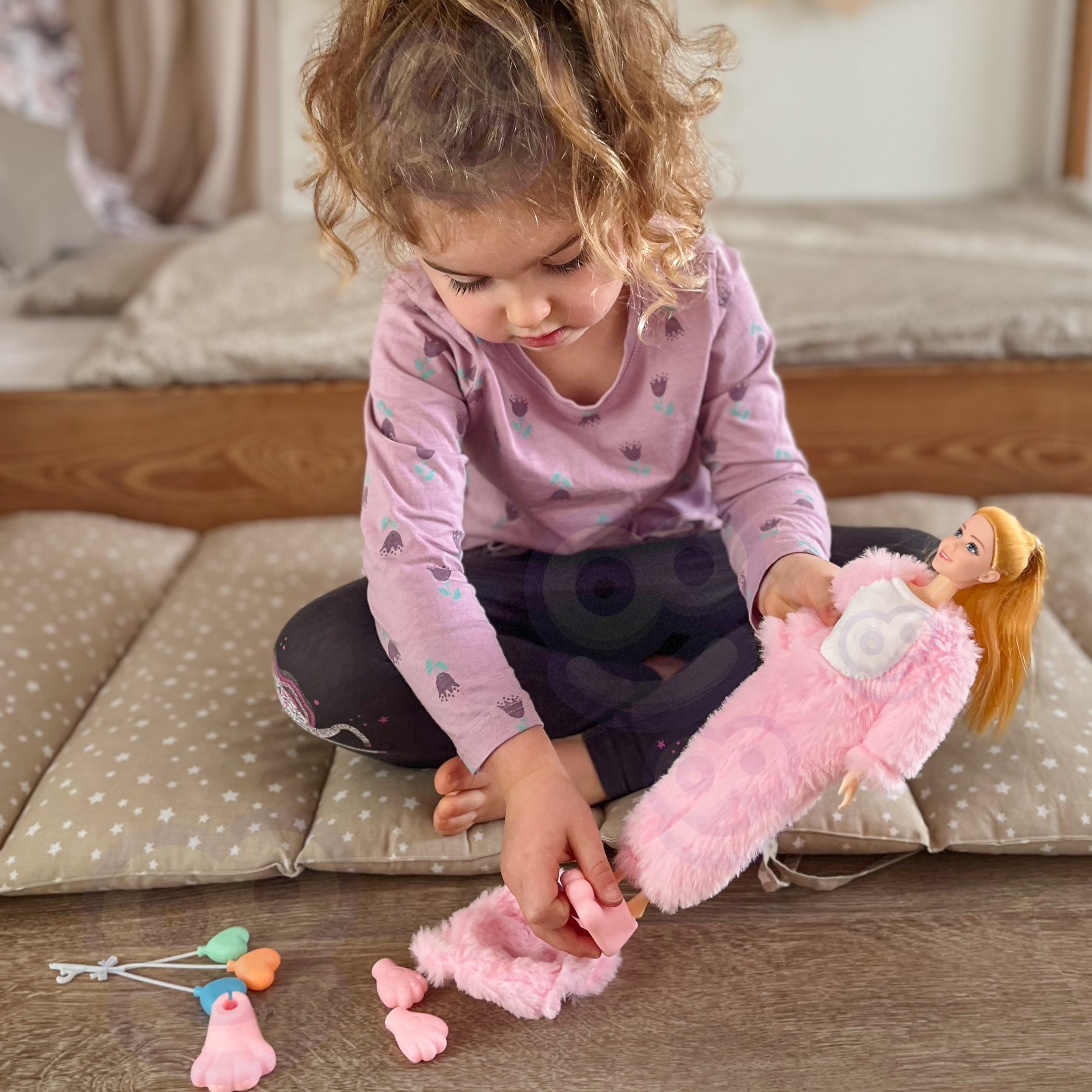 Lalka MIŚ w lunaparku od marki WOOPIE! – magiczna zabawa w parku rozrywki! Przenieś się do świata kolorów i radości z lalką w przebraniu misia, która uwielbia spędzać czas w wesołym miasteczku! Lalka ubrana jest w uroczy, miękki strój który można zdejmować i zmieniać jej styl. W zestawie znajdziesz również kolorowe baloniki w kształcie serc i bilety do parku, co zapewni wiele godzin kreatywnej zabawy. Zabawka wykonana z dbałością o szczegóły zachwyci każdą małą miłośniczkę lalek i bajkowych przygód. Idealna dla dzieci od 3 roku życia – rozwija wyobraźnię, empatię i zdolności manualne!