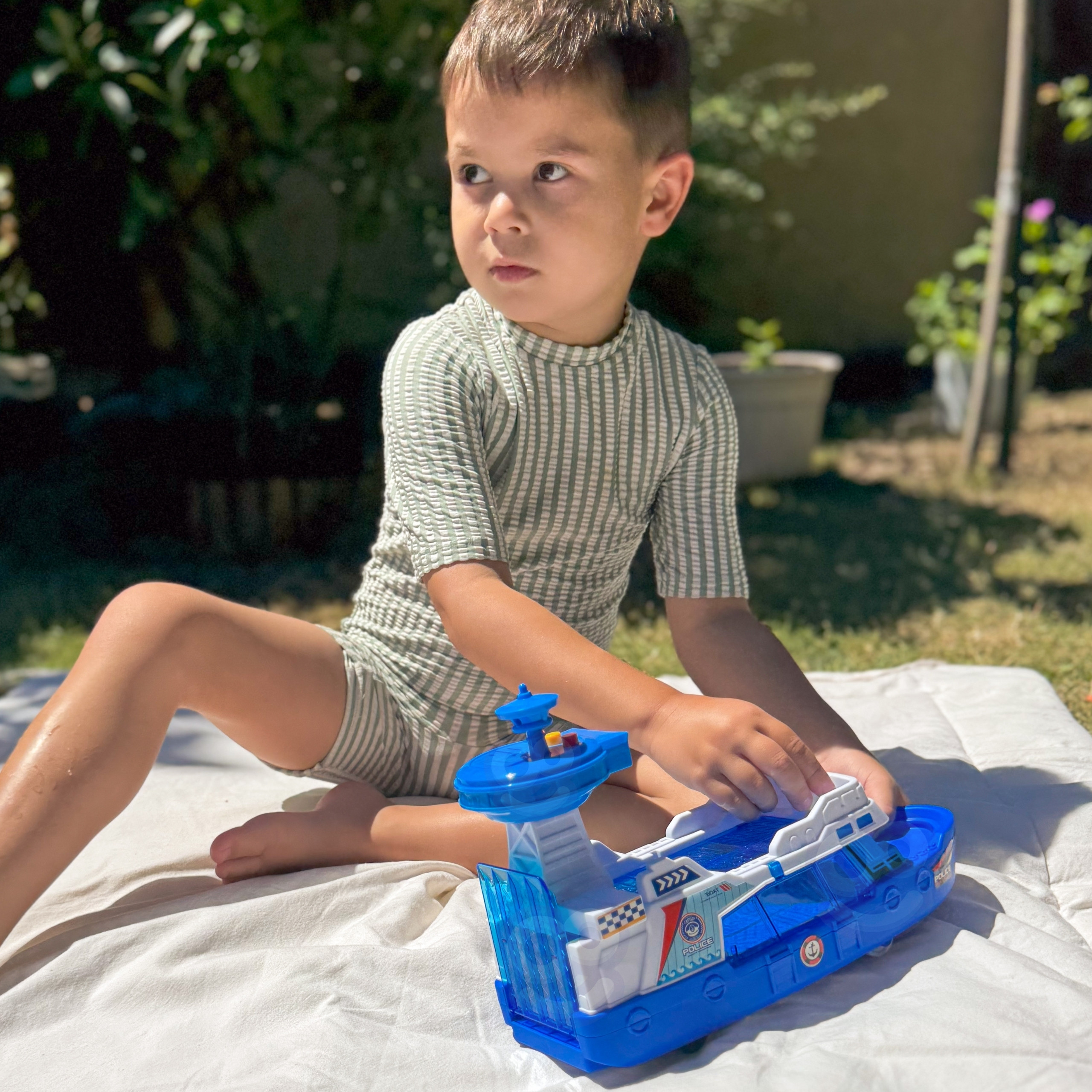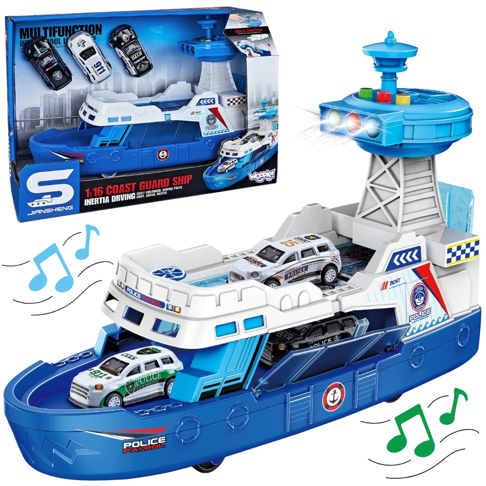 Przenieś się do świata wodnych akcji ratunkowych z policyjną łodzią patrolową od marki Woopie! Ten wyjątkowy zestaw to nie tylko duża, efektowna łódź z ruchomymi elementami, ale także trzy metalowe samochodziki policyjne, które zapewnią mnóstwo emocjonującej zabawy. Realistyczne efekty świetlne i dźwiękowe sprawią, że każda misja będzie jeszcze bardziej ekscytująca. To idealna propozycja dla każdego małego fana służb mundurowych i dynamicznej zabawy!