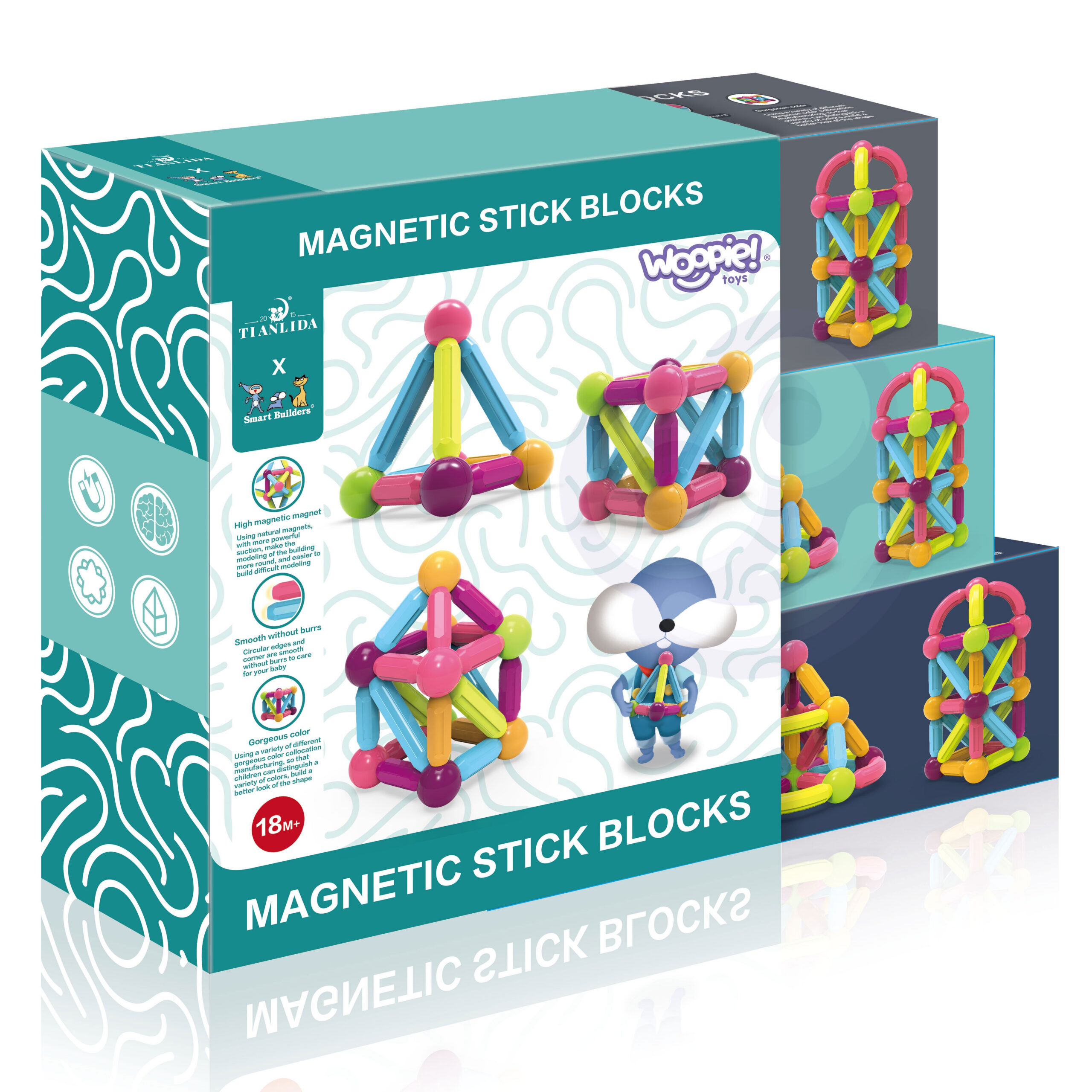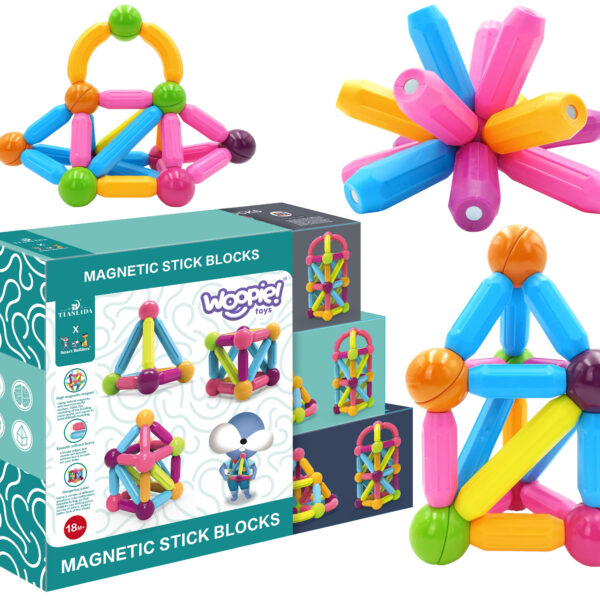 Zestaw grubych klocków magnetycznych od marki WOOPIE łączy ze sobą zabawę i naukę! Wystarczy, że młody konstruktor połączy ze sobą elementy i zacznie tworzyć wymyślne budowle oraz wiele innych układów np. figury geometryczne czy mini domek! Ograniczeniem jest tylko wyobraźnia. Zestaw zawiera 38 elementów. Klocki są grube, różnokolorowe i bezpieczne – idealne dla rączek małych dzieci. Wszystko zapakowane w wygodną skrzyneczkę. Układanie konstrukcji z klocków rozwija u dziecka kreatywność, zdolności manualne („małą motorykę”), wyobraźnię przestrzenną oraz koncentrację.