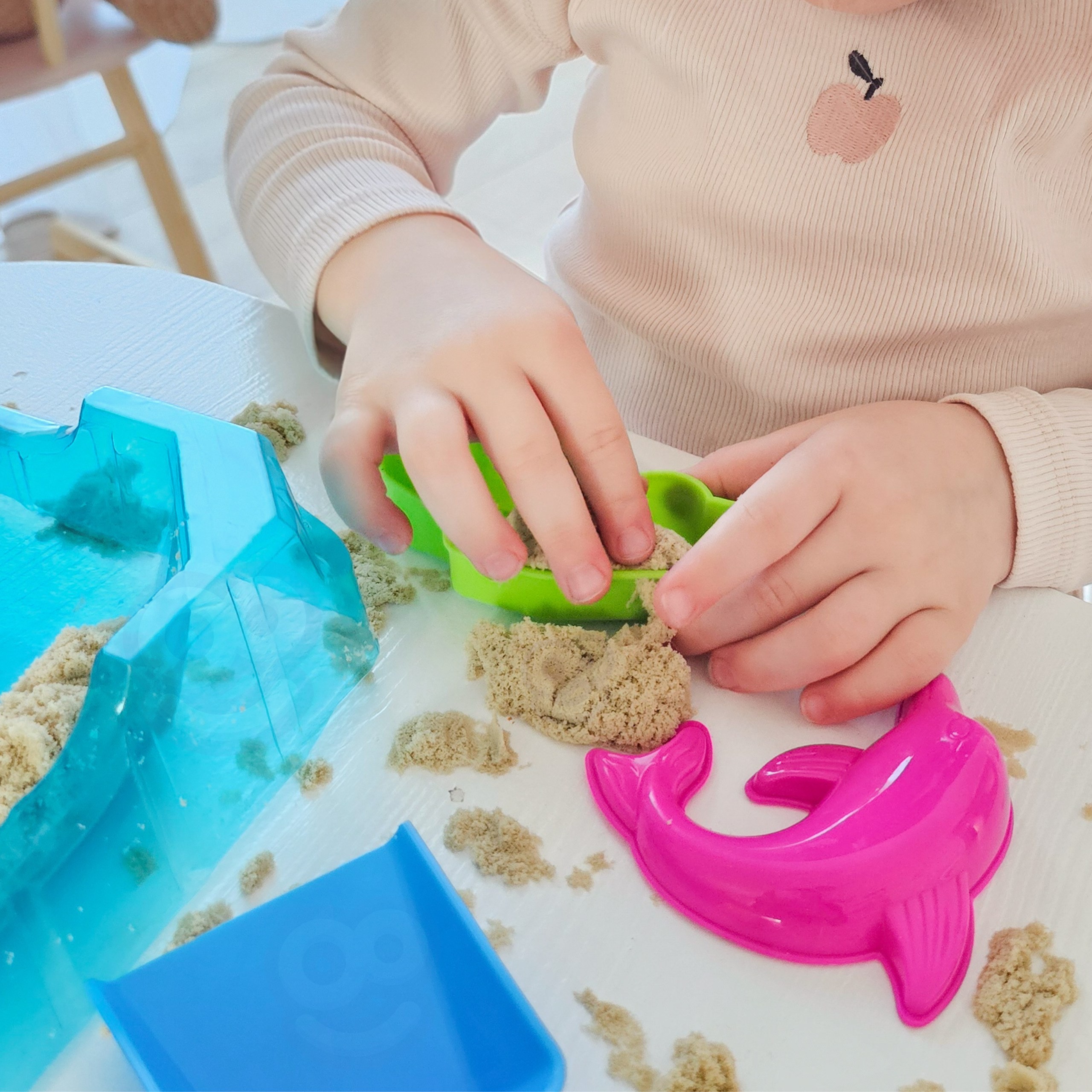 - – Miękki i sensoryczny piasek przyjemny w dotyku, łatwy do formowania i nie wysycha