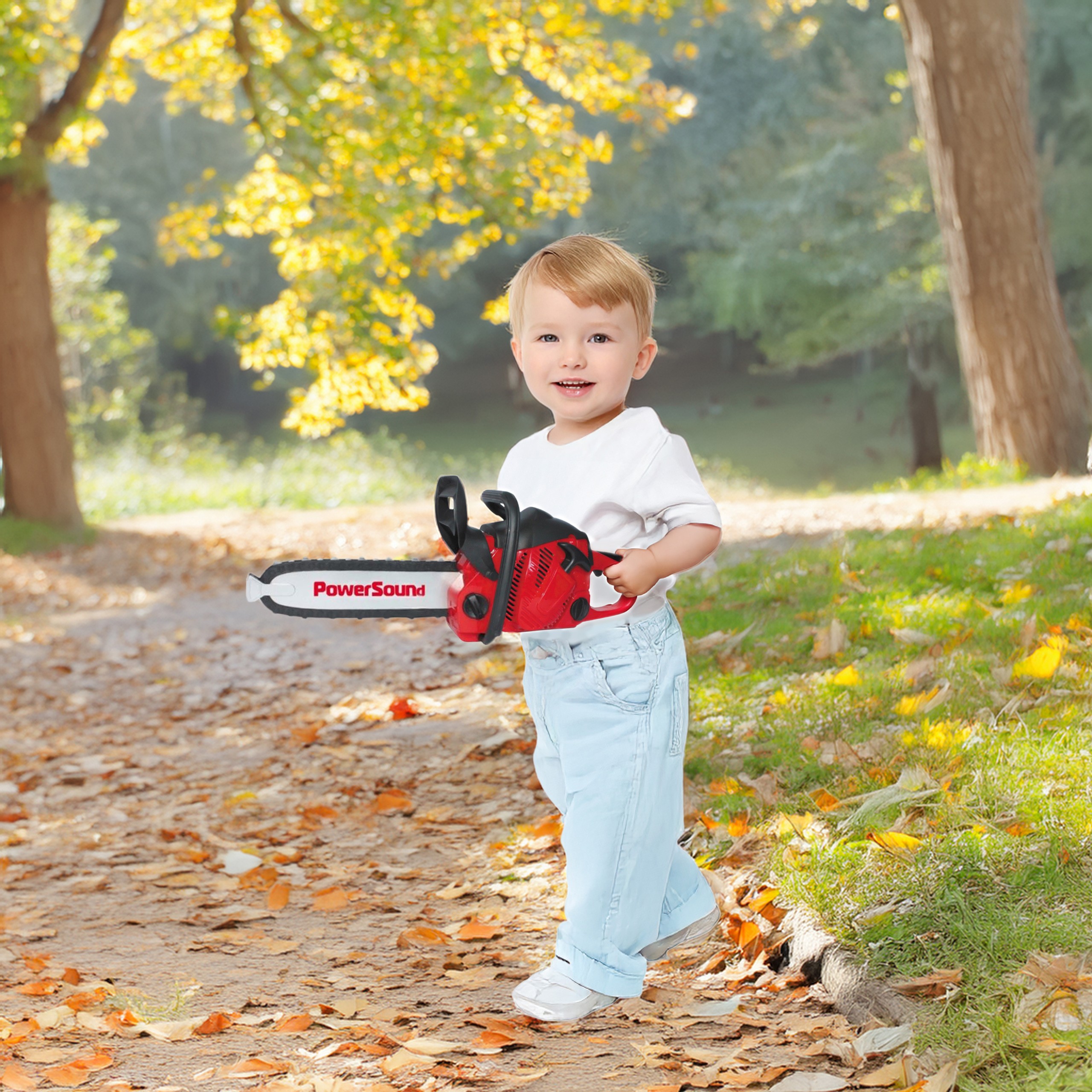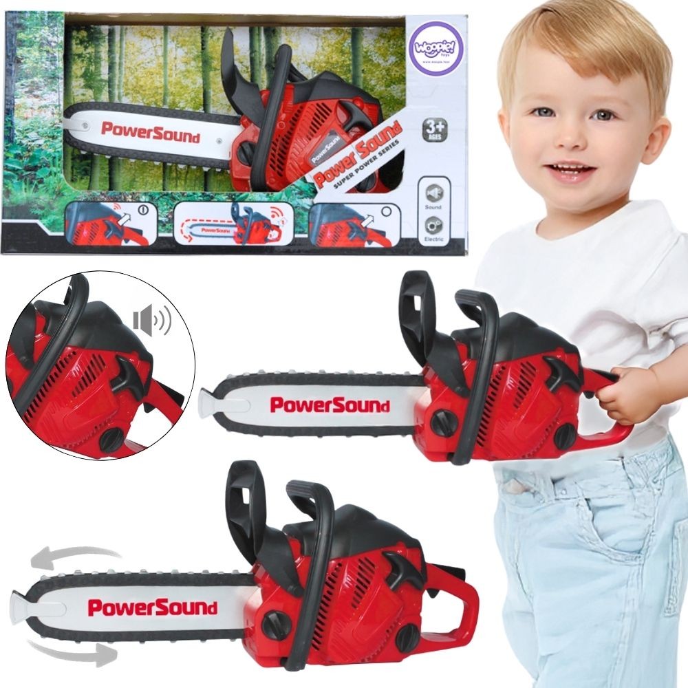 Zabawkowa Piła Spalinowa marki WOOPIE jest w 100% bezpieczna dla dziecka. Obracający się łańcuch zabawkowej piły spalinowej dla dzieci wykonany jest z gumy – nie ma ryzyka, że dziecko skaleczy się jakimś elementem. Piła łańcuchowa dla dzieci uruchamiana jest jak prawdziwa! Aby włączyć zabawkową piłę motorową należy pociągnąć w górę uchwyt rozruchu, następnie nacisnąć górny przycisk na rączce, a potem dolny przycisk. Po wykonaniu tych czynności łańcuch w zabawkowej pile spalinowej zacznie się obracać, a zabawka zacznie wydawać realistyczne dźwięki silnika. Zabawkowa piła motorowa rozwija wyobraźnię dziecka i pozwala mu poczuć się jak dorosły, który wykonuje ważną pracę.