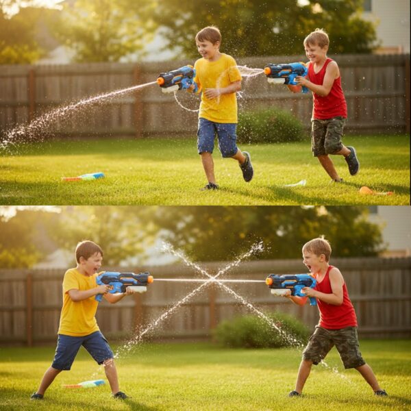 Pistolet na Wodę od marki WOOPIE to zabawka wodna przeznaczona dla dzieci, która zapewnia wiele godzin rozrywki na świeżym powietrzu, szczególnie podczas ciepłych dni. Główna cecha wyróżniająca ten wodny blaster to mechanizm napędowy oparty na ciśnieniu powietrza. Dziecko pompuje wodę do zbiornika, wytwarzając w ten sposób ciśnienie, które umożliwia wystrzeliwanie strumienia wody na dużą odległość aż do 8 m. Pistolet na wodę to świetna zabawka, która dostarcza dzieciom wiele radości, jednocześnie promując aktywność fizyczną i interakcje społeczne