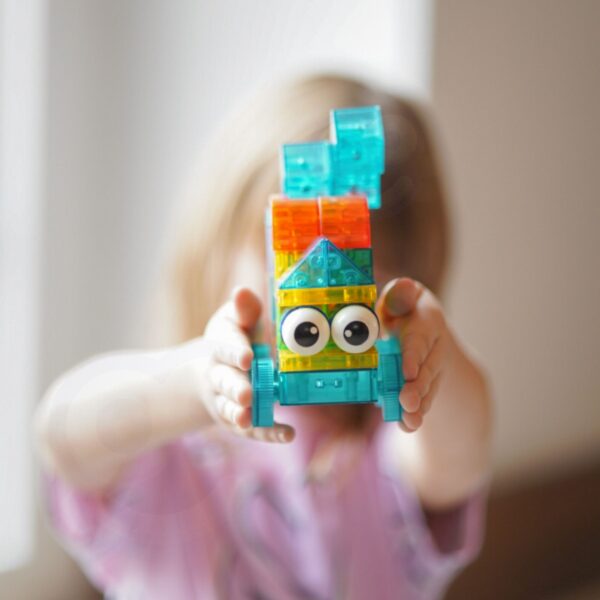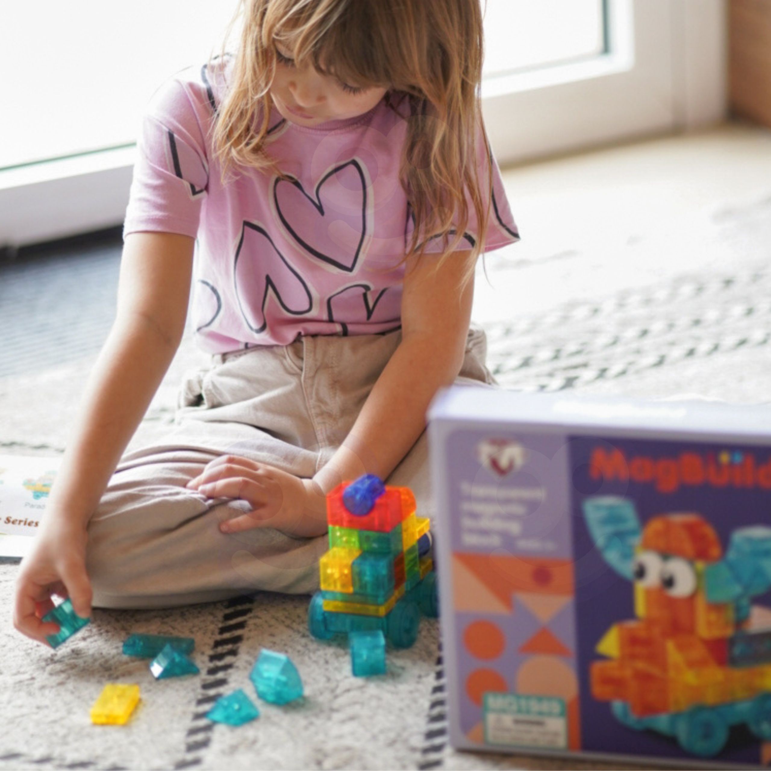 Magiczne, przezroczyste klocki magnetyczne marki Woopie przenoszą dziecko w świat budowania pełen koloru, światła i ruchu – od wesołych pojazdów i zwierzaków po fantazyjne budowle i tory łuków, które składają się „same” dzięki ukrytym magnesom i lekkim, gładkim elementom przyjaznym dla małych rąk.