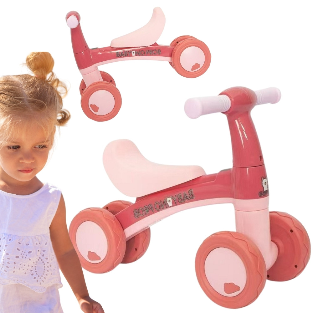 Czterokołowy różowy rowerek biegowy dla dzieci od marki Woopie to idealny wybór do pierwszej nauki jazdy i rozwijania zmysłu równowagi. Lekka, a zarazem wytrzymała konstrukcja z czterema kółkami zapewnia dziecku pełną stabilność. Dzięki ograniczeniu skrętu kierownicy do 135° i nisko położonemu środkowi ciężkości maluch nie straci równowagi i trudniej mu będzie się przewrócić. Rowerek posiada cztery szerokie, ciche koła, które nie wymagają pompowania, amortyzują wstrząsy i zapewniają doskonałą przyczepność oraz odporność na ścieranie — czyni go to idealnym do jazdy po każdej nawierzchni. Prosta, stylowa konstrukcja nie posiada żadnych ostrych krawędzi, a miękkie elementy dbają o komfort użytkowania nawet podczas długich zabaw. Proces składania nie wymaga użycia narzędzi – błyskawiczny montaż w mniej niż minutę sprawia, że rowerek jest gotowy do jazdy niemal od razu po rozpakowaniu. Jest to idealny prezent dla aktywnego malucha!