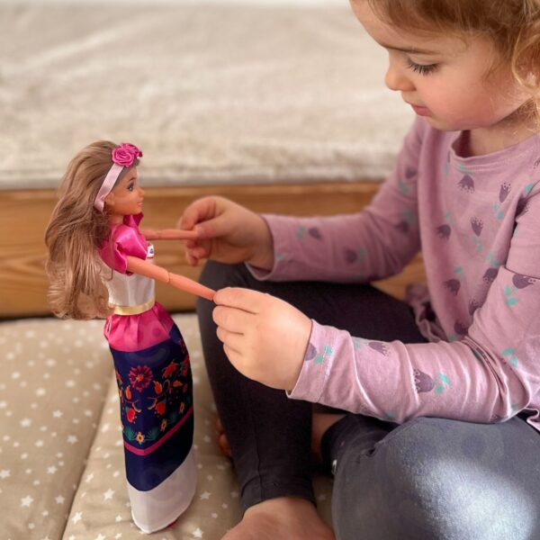 Poznaj uroczą lalkę Lily w tradycyjnym stroju meksykańskim, która zabierze Twoje dziecko w świat kreatywnej zabawy i wyobraźni! Lalka ma piękne, długie, brązowe włosy ozdobione opaską z różowymi różami. Jej strój zachwyca soczystymi kolorami i bogactwem wzorów, nawiązując do stylistyki ludowej. Idealna dla każdej małej księżniczki, która uwielbia bawić się w odgrywanie ról i przebieranie!Lalka posiada ruchome ręce i nogi, co urozmaica zabawę. Wysokiej jakości wykonanie i dbałość o szczegóły sprawiają, że będzie wspaniałym dodatkiem do kolekcji i doskonałym pomysłem na prezent!