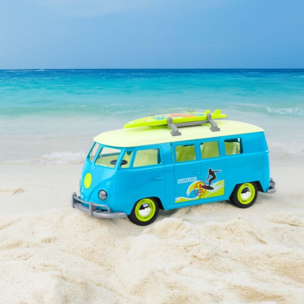 Klasyczny Bus Surfing Van w skali 1:14 to gratka dla każdego miłośnika motoryzacji i klimatu retro. Ten czerwono-biały model mikrobusa z deską surfingową na dachu wygląda niezwykle realistycznie i przeniesie Cię prosto na słoneczną plażę. Pojazd wyposażony jest w efekty świetlne i dźwiękowe, które uruchamiają się po naciśnięciu, zapewniając dodatkowe wrażenia podczas zabawy. Realizmu dodają otwierane boczne i tylne drzwi, a także otwierana maska, umożliwiająca zajrzenie do środka pojazdu. Wykonany z dbałością o detale, będzie idealny zarówno do zabawy, jak i jako element kolekcji.