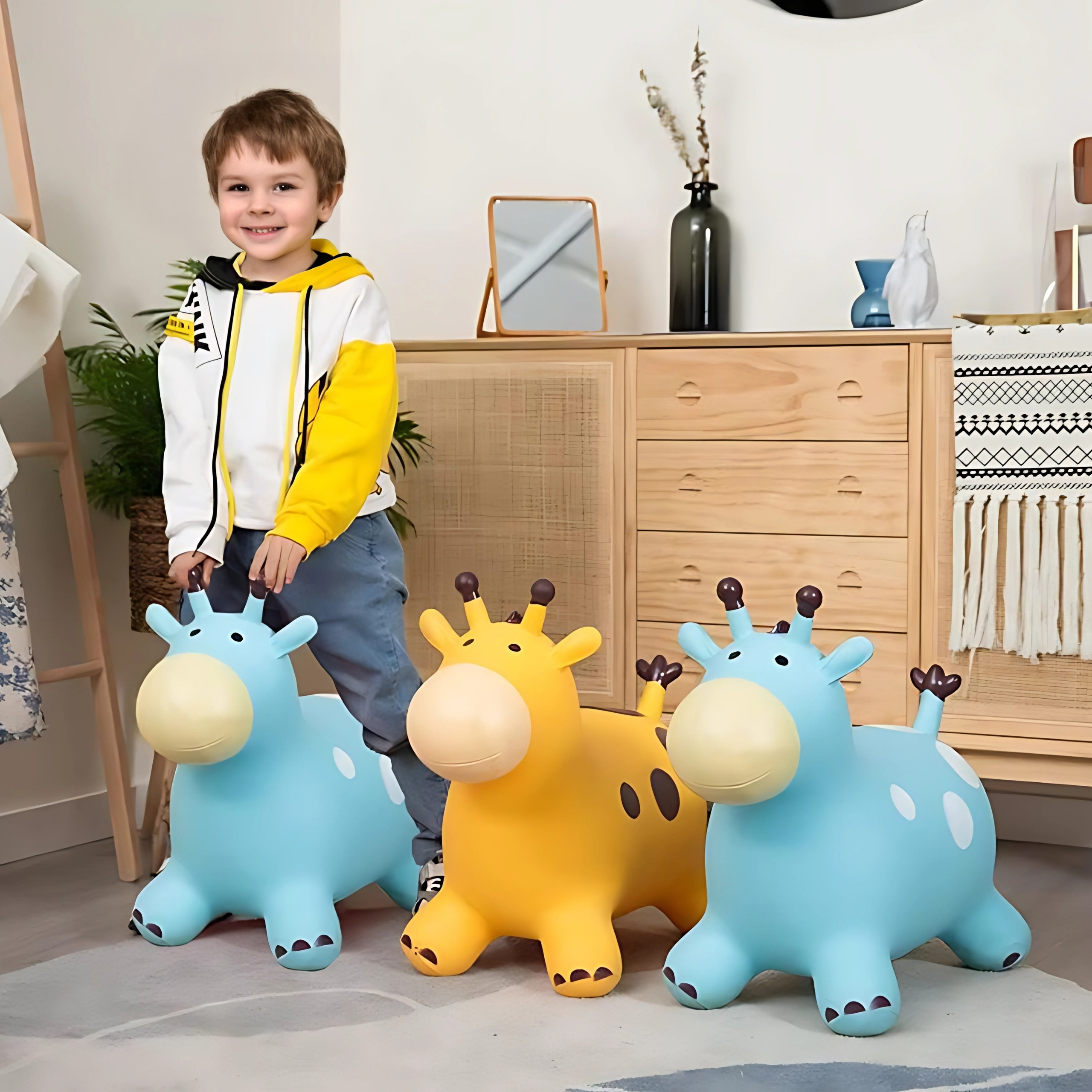 WOOPIE Skoczek Gumowy do Skakania Żyrafa Żółta + Pompka