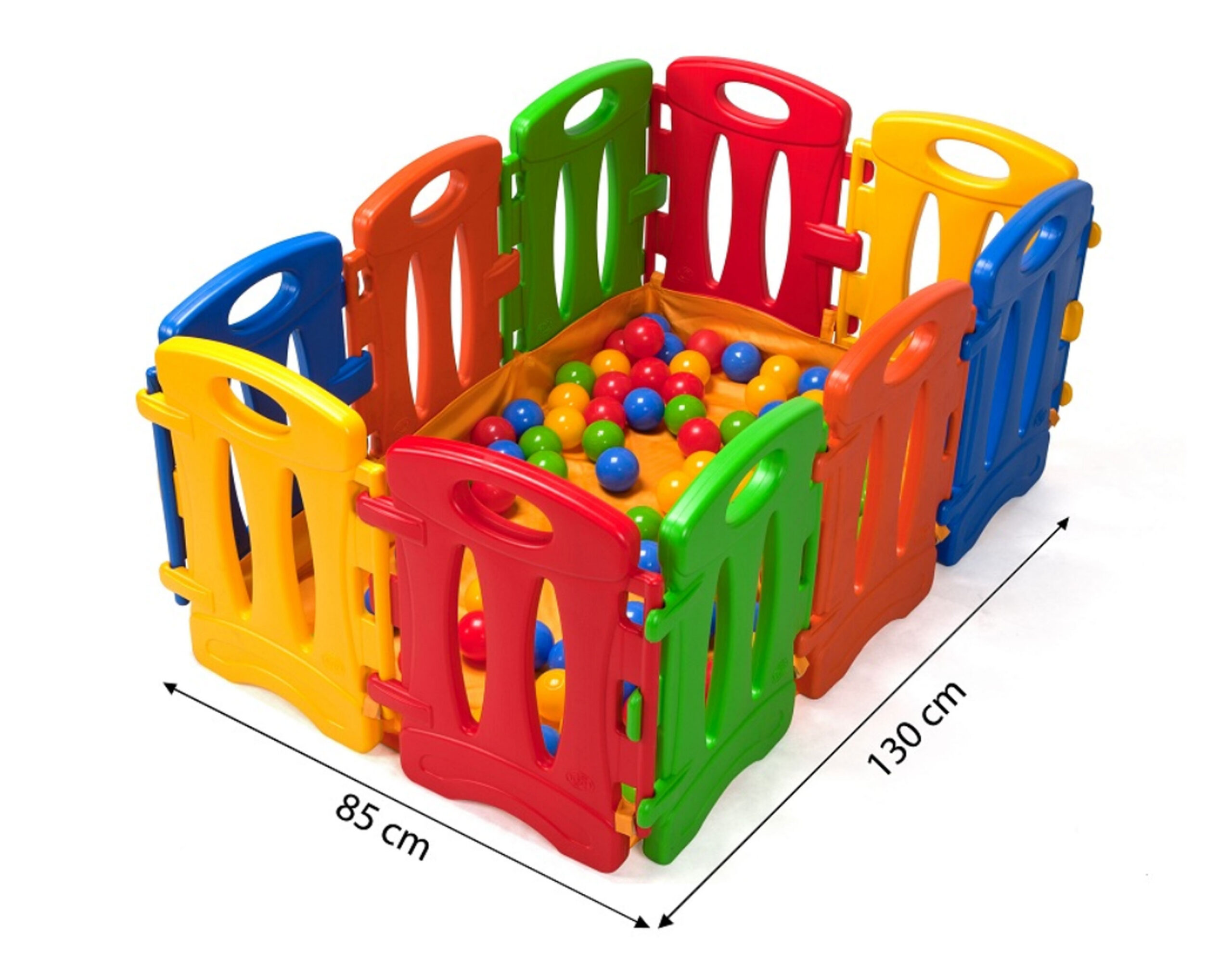 Płotek dla dzieci, z którego można ułożyć kojec dla dziecka, aby mogło się bawić w środku. Wystarczy umieścić wewnątrz pluszaka, miękką pościel lub ulubioną zabawkę. Można również użyć go jako płotka, aby zagrodzić miejsca, w które nie chcemy, aby uczęszczał maluch.