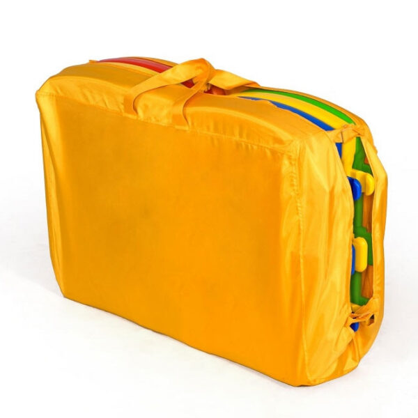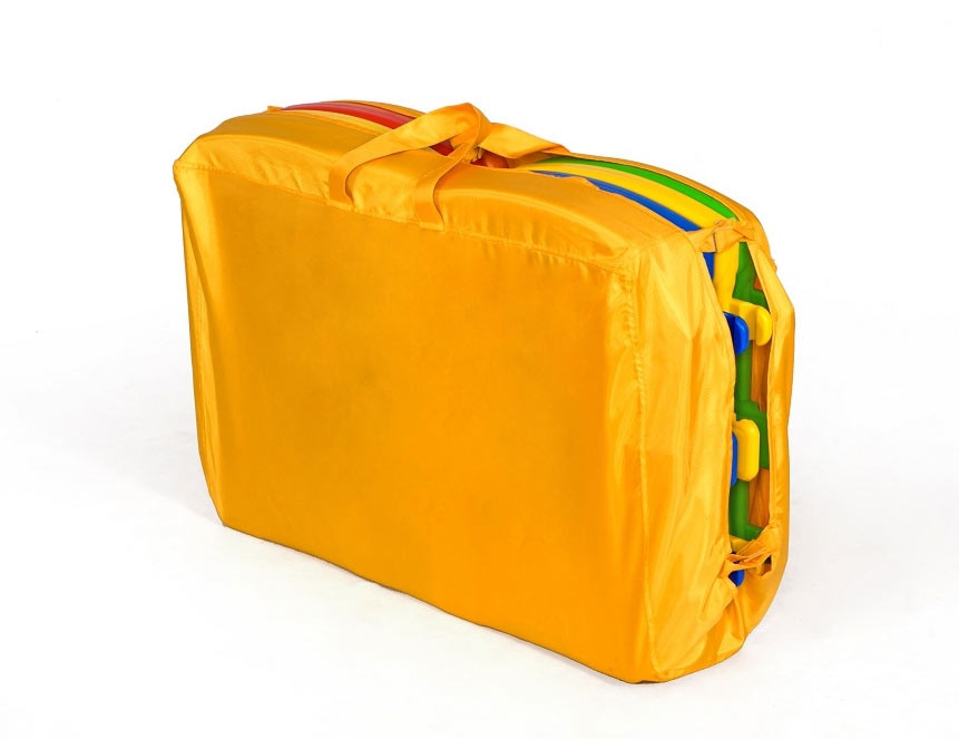 – Płotek można zdemontować i złożyć w torbę, która jest jednocześnie podłogą kojca w celu przewiezienia lub przechowania.