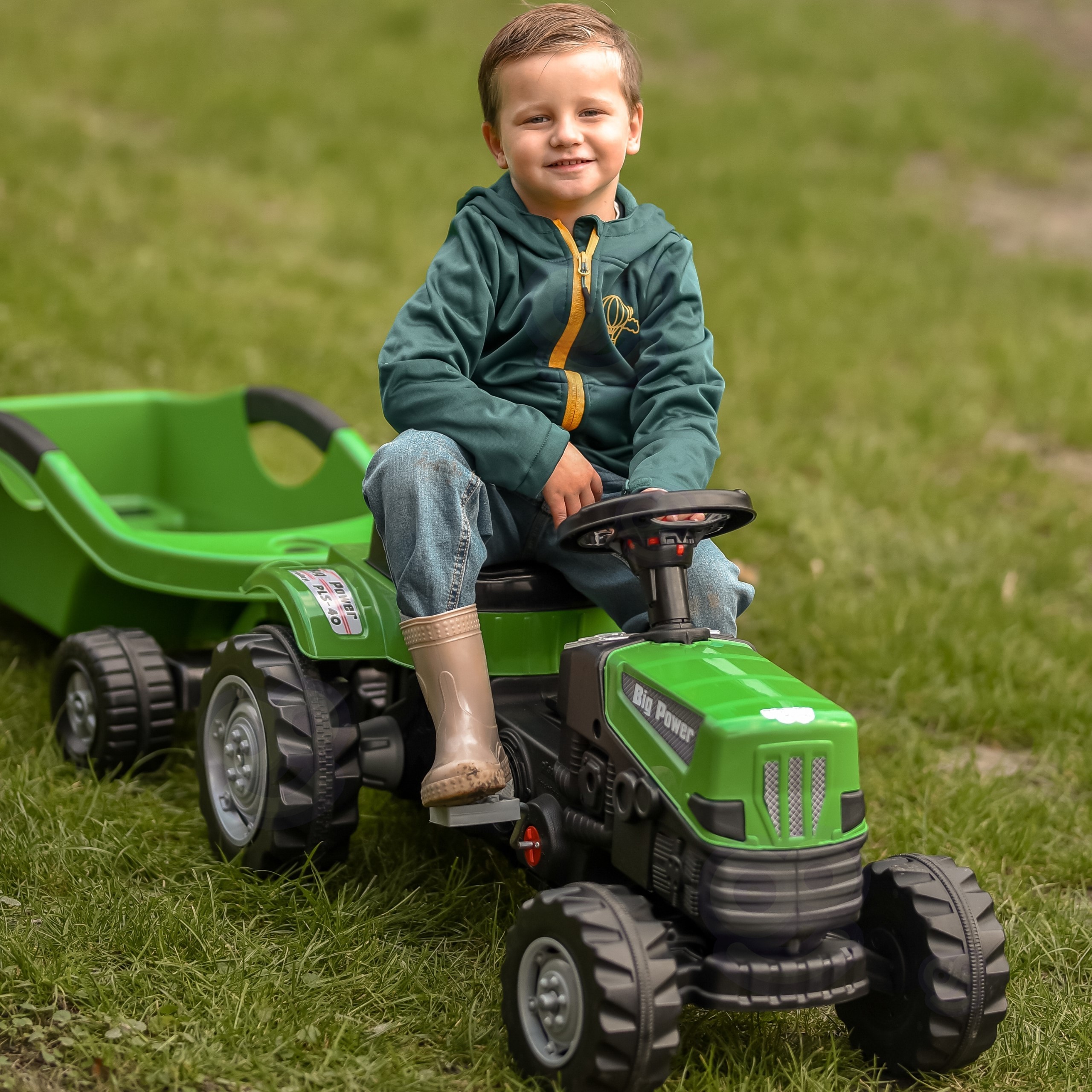Zielony Traktor Na Pedały Big Power Z Przyczepą Pozwoli na wejście na wyższy poziom zabawy w małego rolnika. Wykonany z wytrzymałego tworzywa sztucznego i wyposażony w praktyczną przyczepę, z pewnością stanie się ulubioną zabawką każdego dziecka. Ten pięknie zaprojektowany pojazd posiada regulowane siedzisko zapewniając wygodę jazdy dla każdego malucha.