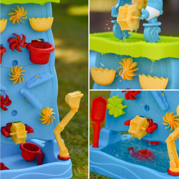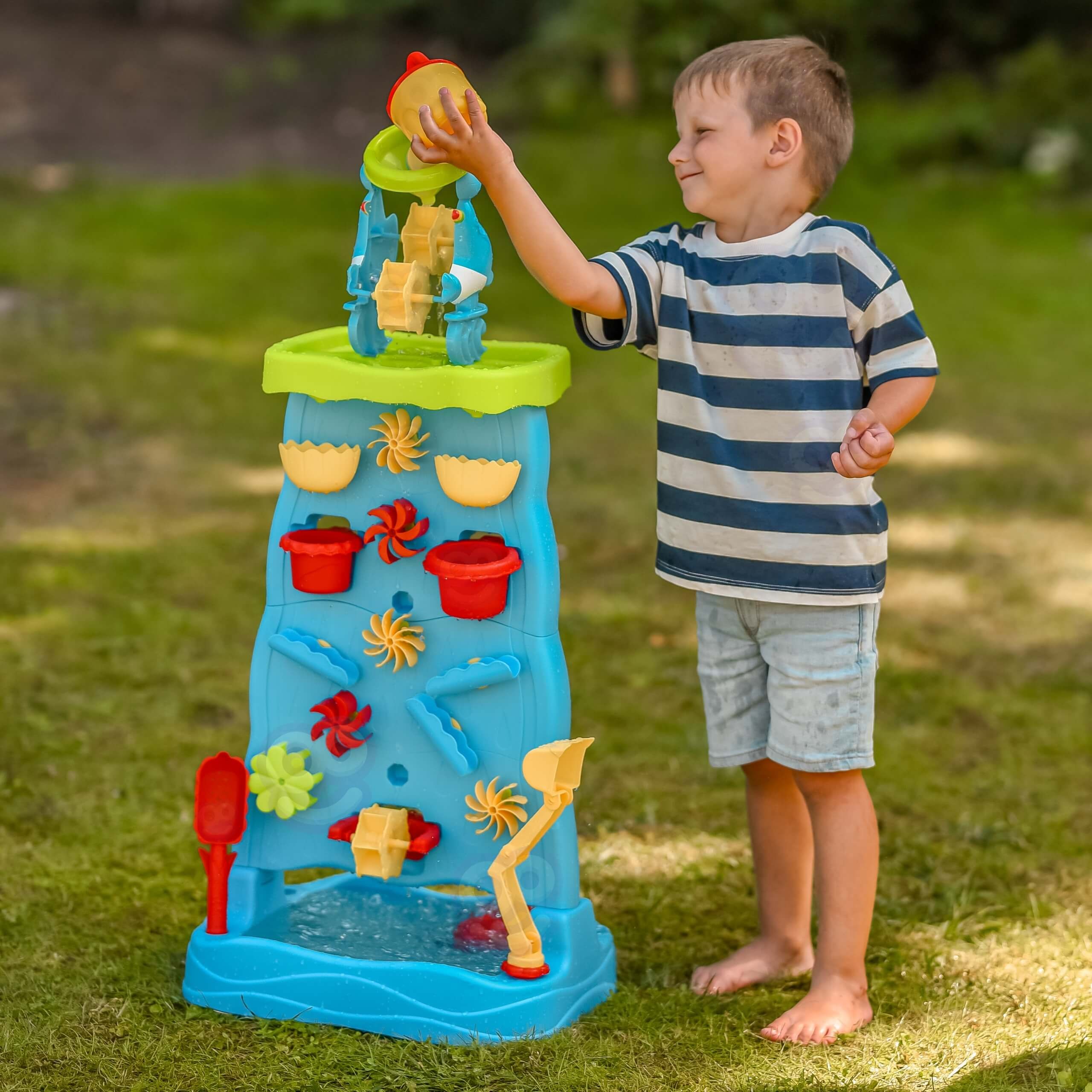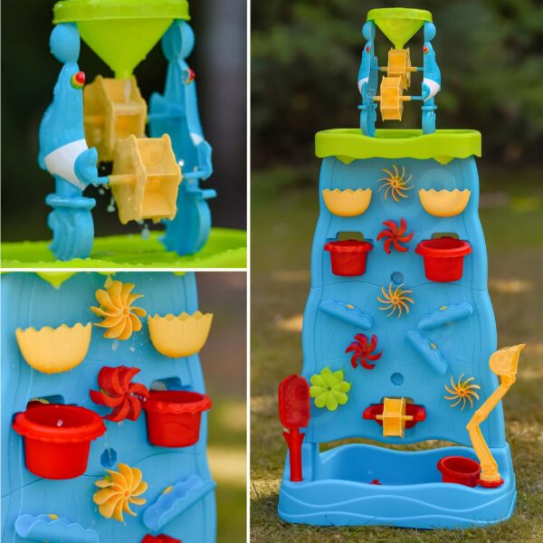 Stolik Wodny Dwustronna Ścianka Wodna marki Woopie to wyjątkowa zabawka, która zamieni każdy ogród lub plażę w miejsce pełne śmiechu i kreatywnej zabawy. Dzięki licznym kolorowym akcesoriom, ruchomym młynkom i pojemnikom dzieci mogą eksperymentować z wodą i piaskiem, rozwijając przy tym swoje zdolności manualne oraz wyobraźnię. Prosta konstrukcja i duże rozmiary sprawiają, że zabawka jest wygodna i atrakcyjna nawet dla kilkorga dzieci naraz.