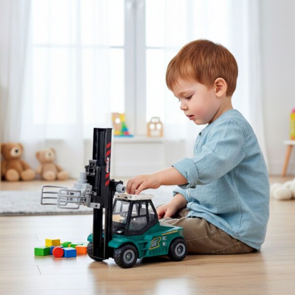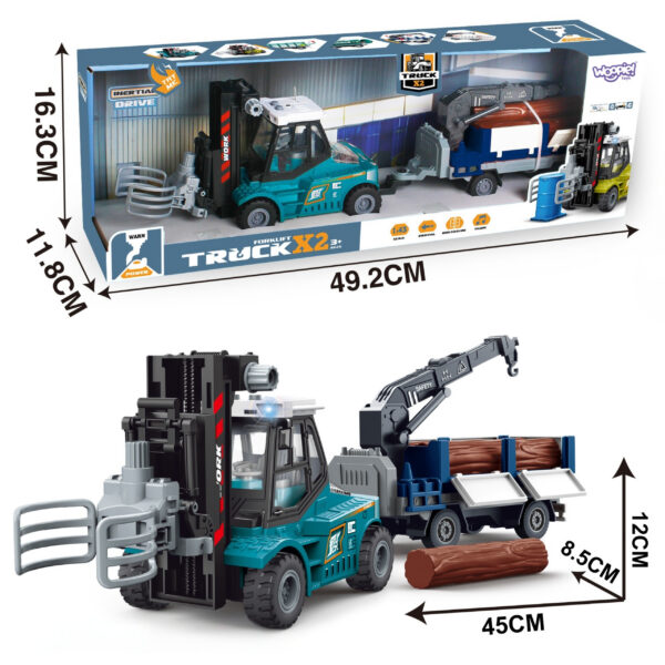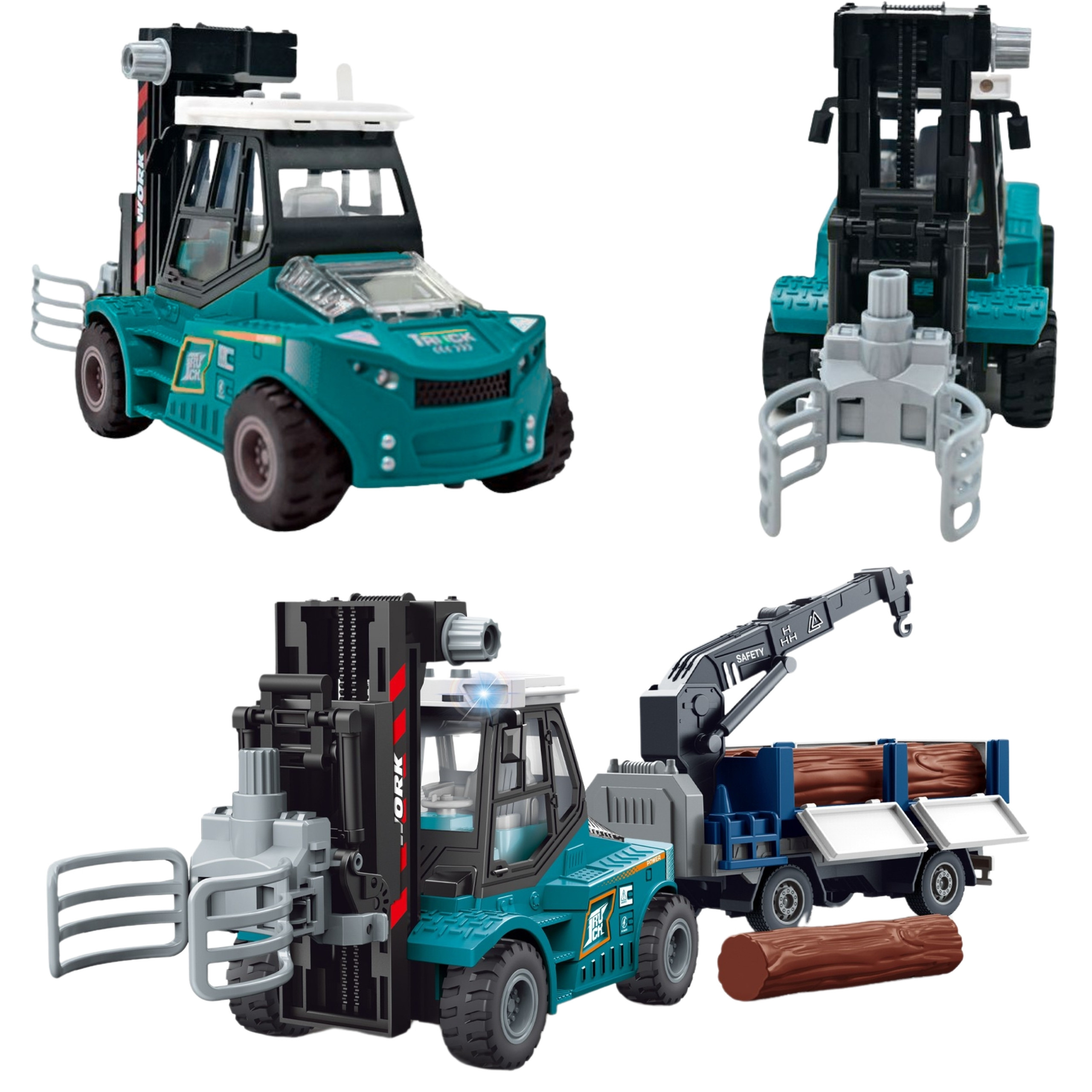 Wózek widłowy z przyczepą do przewozu drewna od marki Woopie to nie tylko ciekawa i realistyczna zabawka, ale także doskonałe narzędzie do wspierania rozwoju dziecka. Model wykonany jest z wysokiej jakości, trwałych materiałów, które gwarantują bezpieczeństwo podczas zabawy oraz długą żywotność produktu. Wózek wyposażony jest w napęd inercyjny, co oznacza, że po pchnięciu sam porusza się do przodu, co dodatkowo uatrakcyjnia zabawę i pobudza dziecięcą wyobraźnię. Wózek widłowy posiada ruchomy chwytak, który pozwala na podnoszenie i przenoszenie drewnianych kłód, co daje dziecku możliwość odgrywania realistycznych scenek związanych z transportem i magazynowaniem. Przyczepa z otwieranymi bokami umożliwia łatwy załadunek i rozładunek belek, co sprzyja rozwijaniu zdolności manualnych oraz koordynacji wzrokowo-ruchowej. Dzięki temu dziecko uczy się logicznego myślenia, planowania kolejnych ruchów oraz precyzji w działaniu. Dodatkowo zabawka została wyposażona w efekty świetlne i dźwiękowe, które symulują prawdziwą pracę maszyny, co jeszcze bardziej angażuje dziecko i stymuluje jego zmysły. Dźwięki pracy silnika, sygnały ostrzegawcze czy odgłosy podnoszenia ładunku sprawiają, że zabawa staje się bardziej realistyczna i emocjonująca. Wszystkie elementy zabawki są starannie zaprojektowane, aby były łatwe w obsłudze nawet dla małych rączek, a zarazem trwałe i odporne na intensywną eksploatację. To świetny wybór dla małych miłośników pojazdów i wszelkich maszyn transportowych.