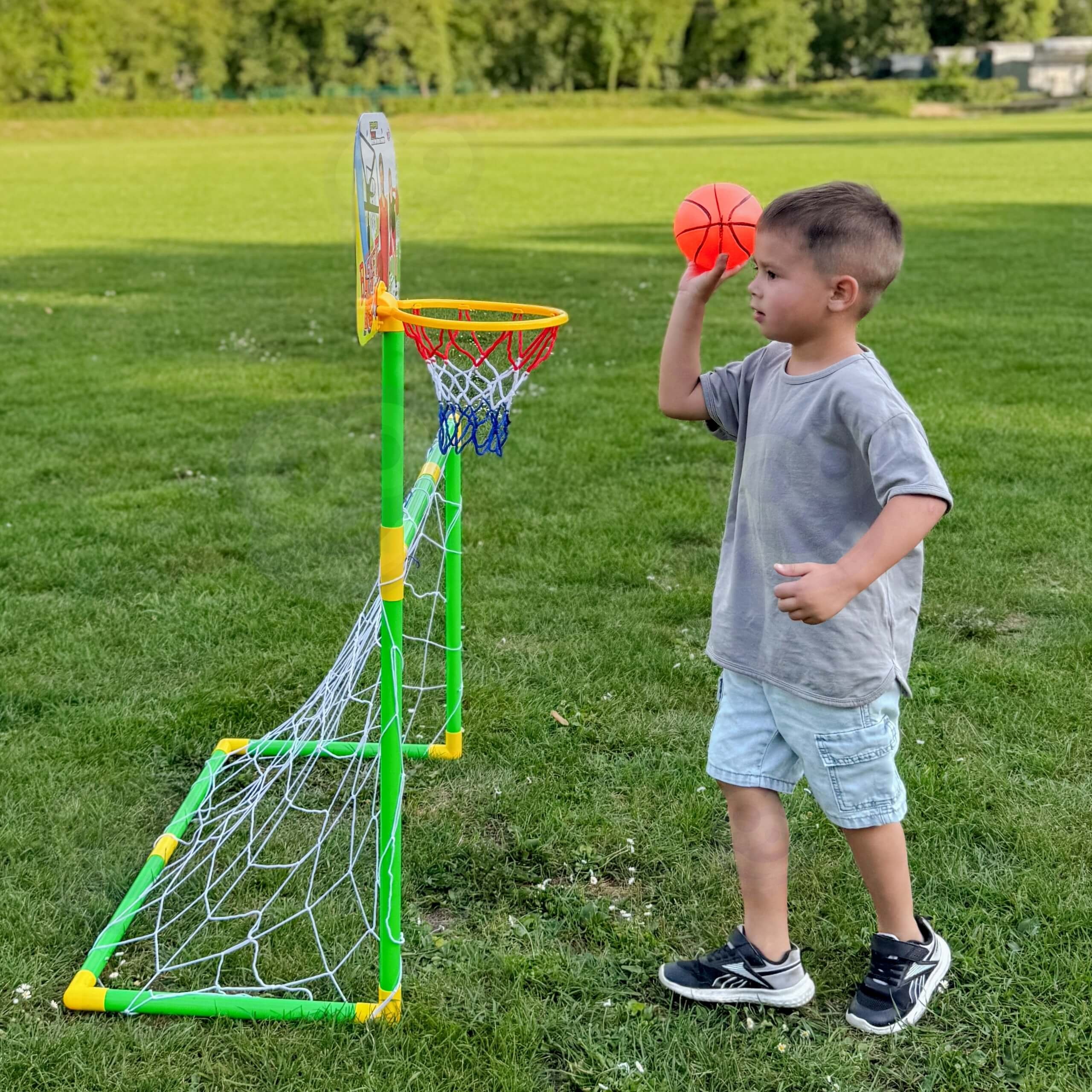 - – 2w1 – kompletny zestaw sportowy koszykówka + bramka do piłki nożnej + piłka