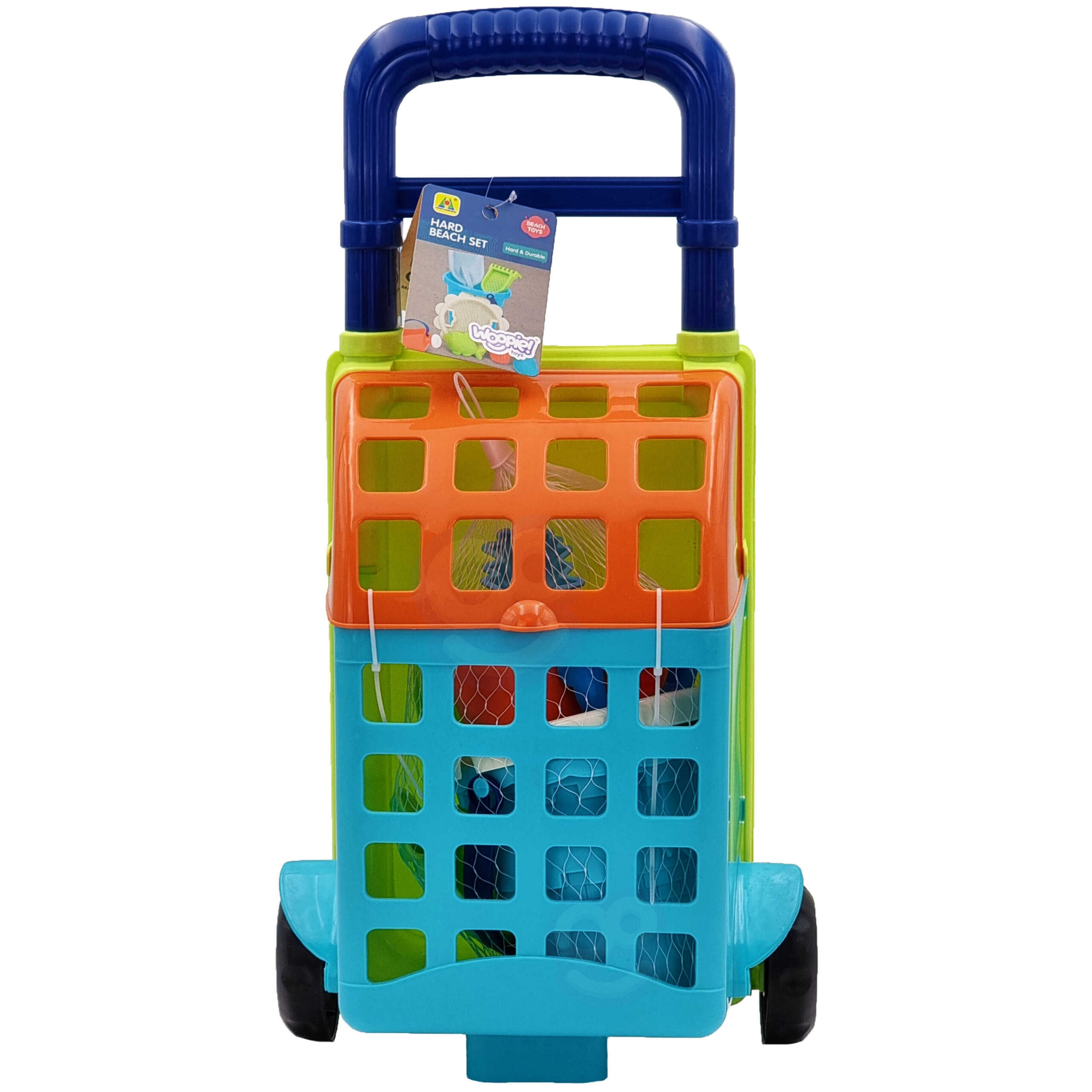 Zestaw do Piasku w Wózku od marki WOOPIE to świetny dodatek do piaskownicy, a nawet ogrodu. Zestaw zawiera 9 elementów: wózek, wiaderko, sitko, konewkę, 3 foremki, łopatkę, grabki. Zestaw ma piękny neonowy design. Wiaderko i konewka ma wygodny uchwyt do przenoszenia. Gwarancja super zabawy w piaskownicy, na plaży, a nawet w ogrodzie!