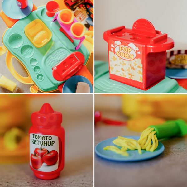 Zestaw do robienia przekąsek od marki Woopie to spełnienie marzeń każdego małego smakosza i aspirującego kucharza. Ten uroczy, przenośny zestaw do zabawy w bar z przekąskami pozwoli Twojemu dziecku na kreatywne spędzanie czasu, rozwijając jednocześnie jego zdolności manualne i wyobraźnię. Kompaktowy, zamykany w wygodnej walizeczce, jest idealny do zabawy w domu, u znajomych, a także w podróży. Wystarczy otworzyć walizkę, by w kilka sekund rozłożyć bar i rozpocząć kulinarną przygodę. Bogactwo akcesoriów gwarantuje godziny wciągającej zabawy. Dziecko może wcielić się w rolę kucharza, sprzedawcy lub klienta, tworząc własne scenariusze i dania. Zestaw pozwala na przygotowanie ulubionych przekąsek, takich jak lody, frytki, hamburgery czy popcorn. Wystarczy uformować z ciastoliny kształt danego produktu, by następnie serwować go na talerzyku lub w specjalnych opakowaniach. Wysoka jakość wykonania i bezpieczne materiały zapewniają bezpieczną i trwałą rozrywkę na długi czas. To doskonały pomysł na prezent, który z pewnością zachwyci każde dziecko i zapewni mu mnóstwo radości.
