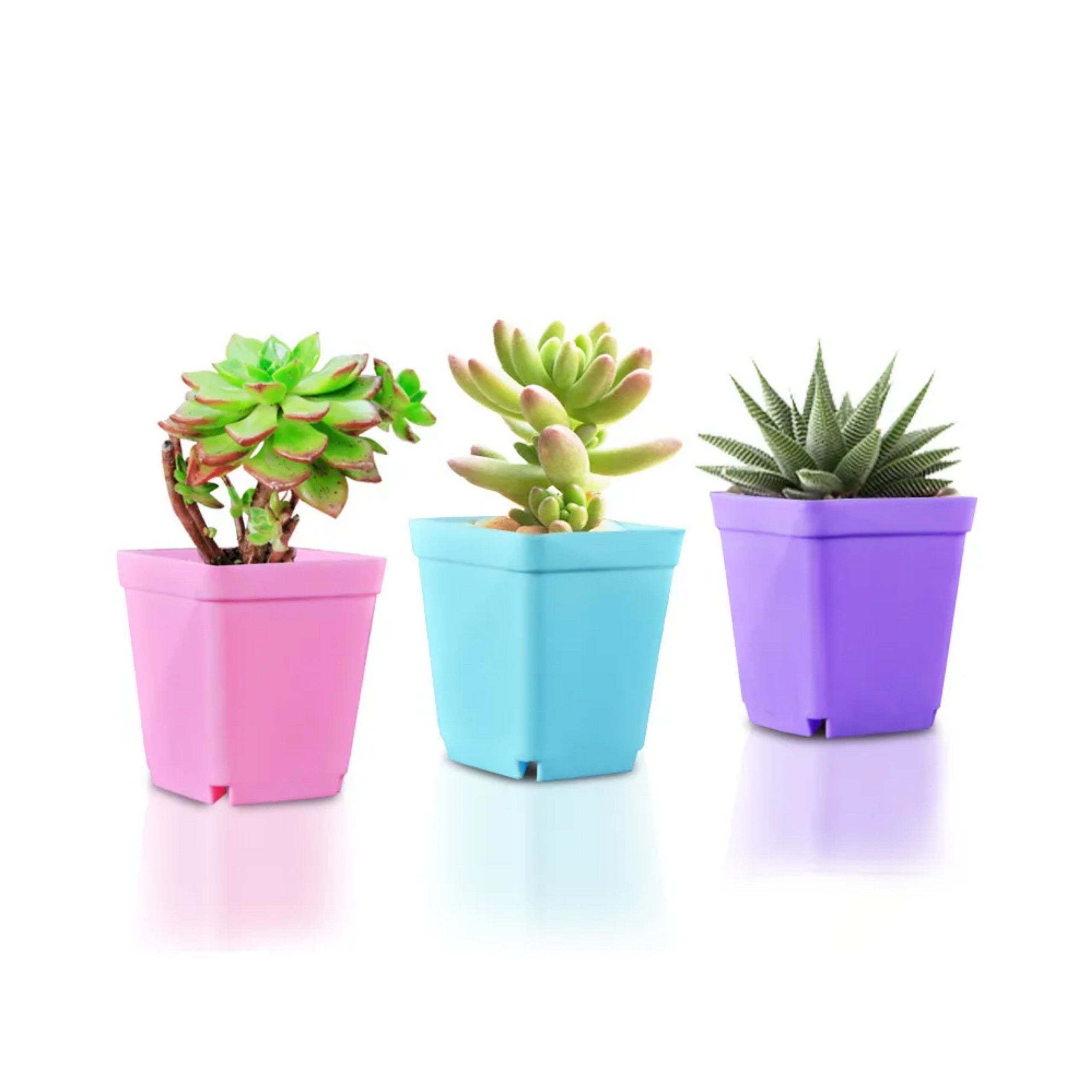 - – 3 kolorowe doniczki