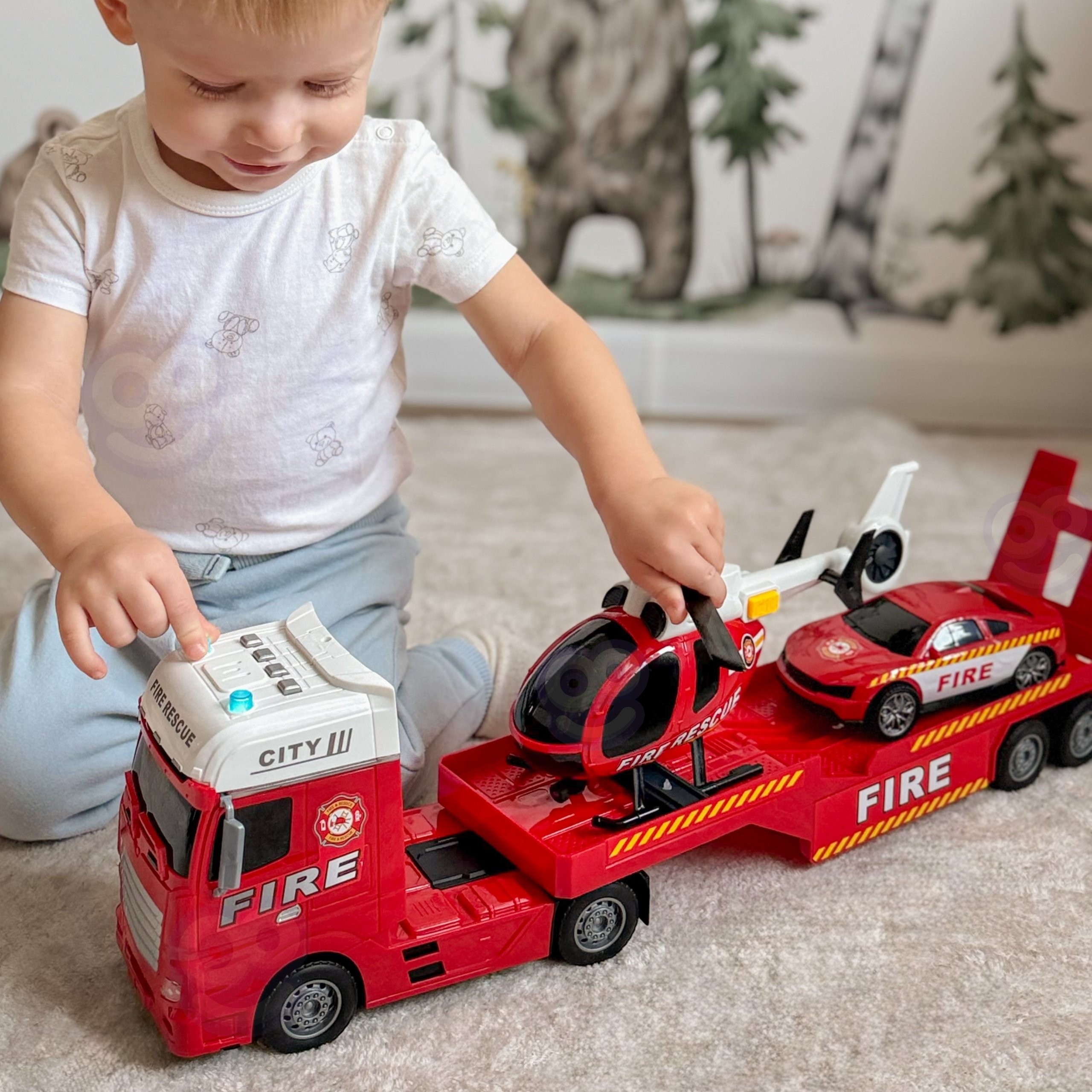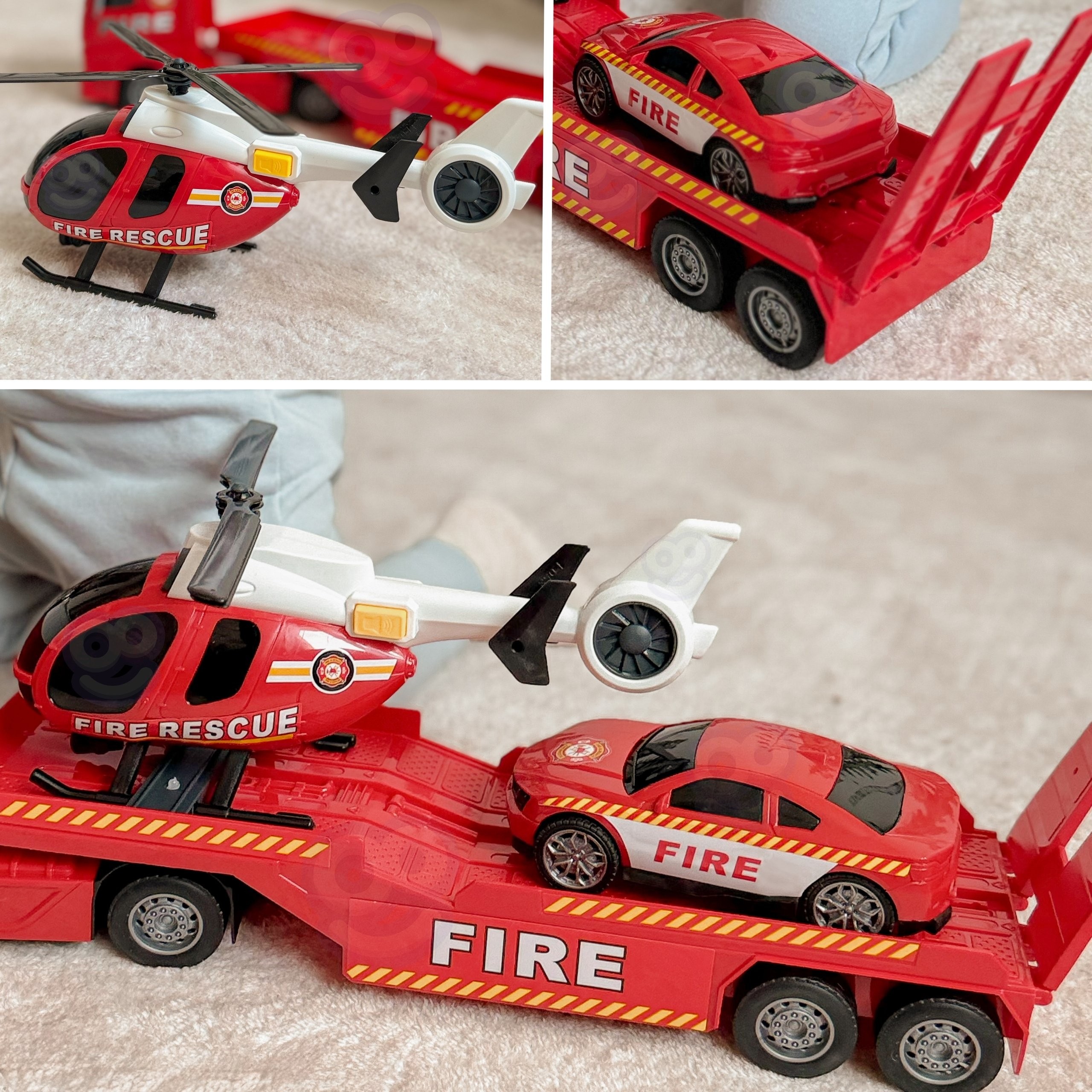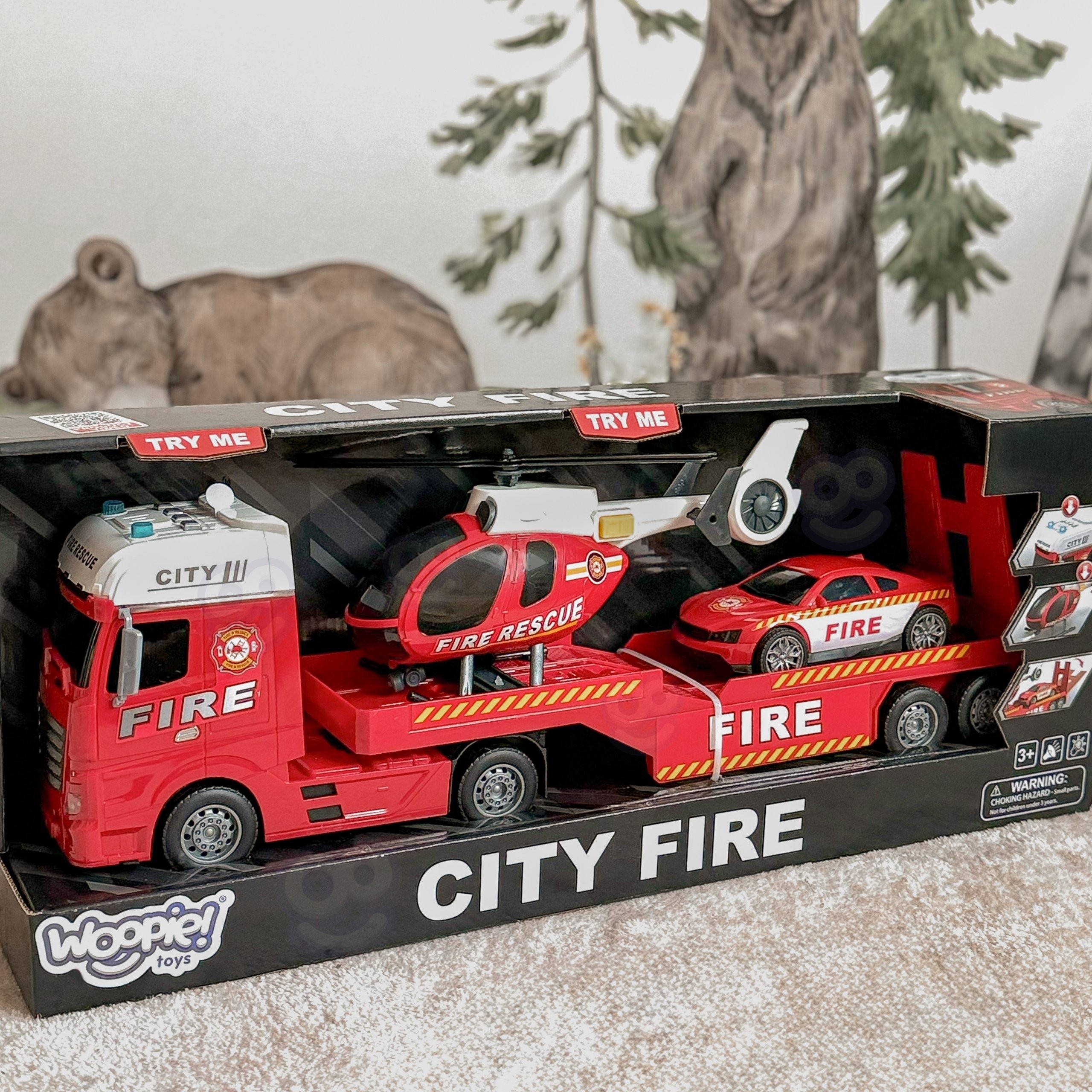 WOOPIE Zestaw Pojazdów Laweta Strażacka Helikopter Samochód Dźwięk Światła