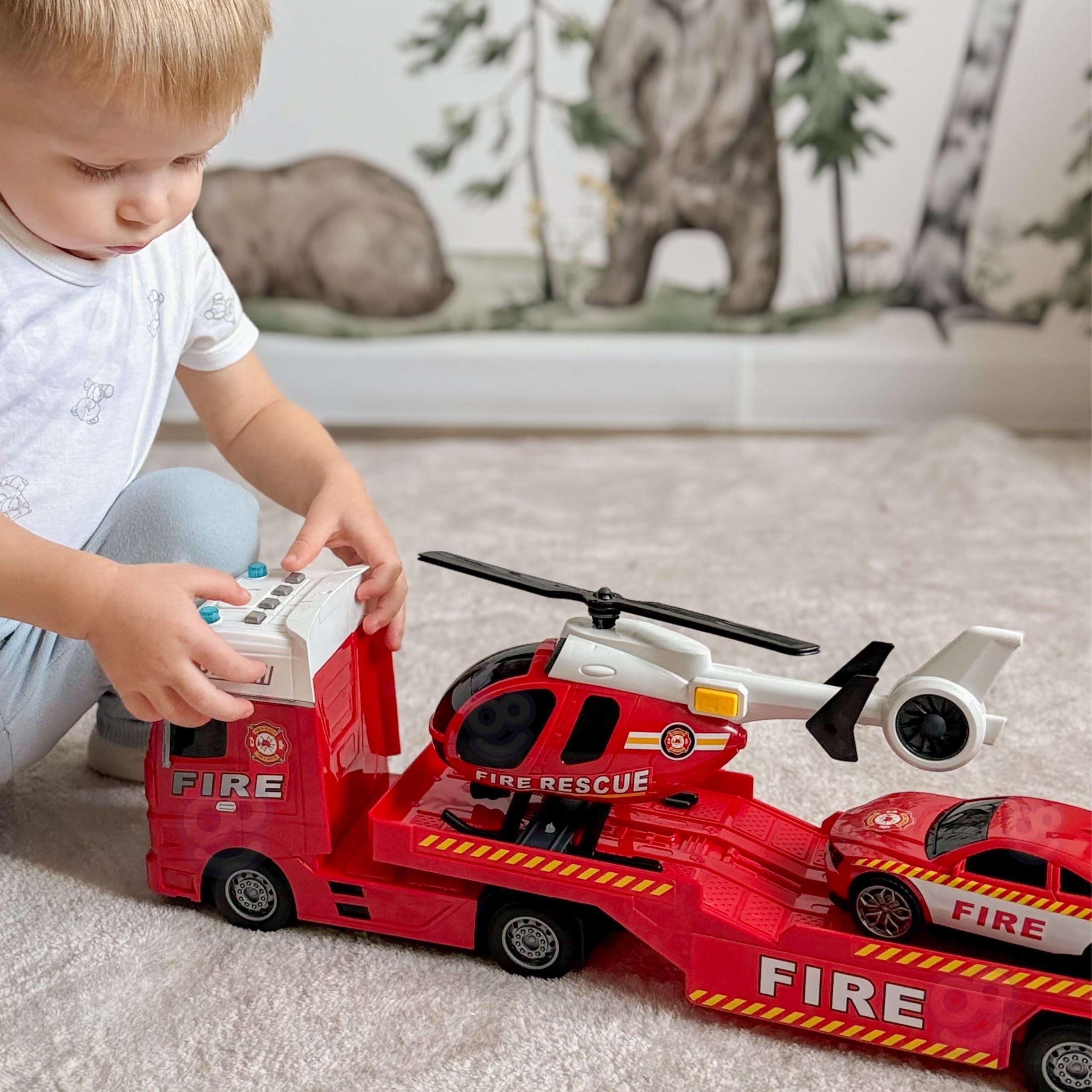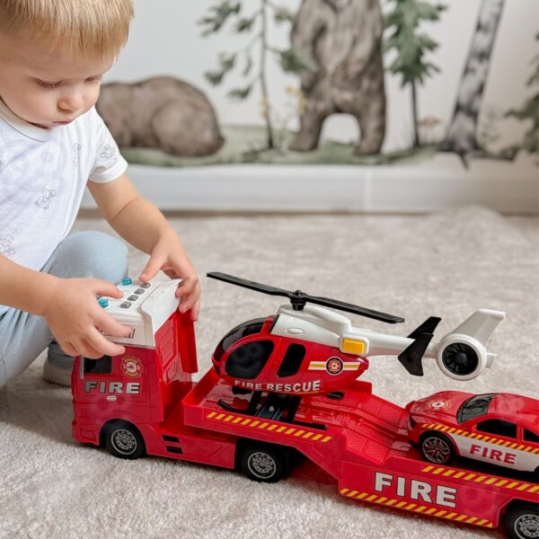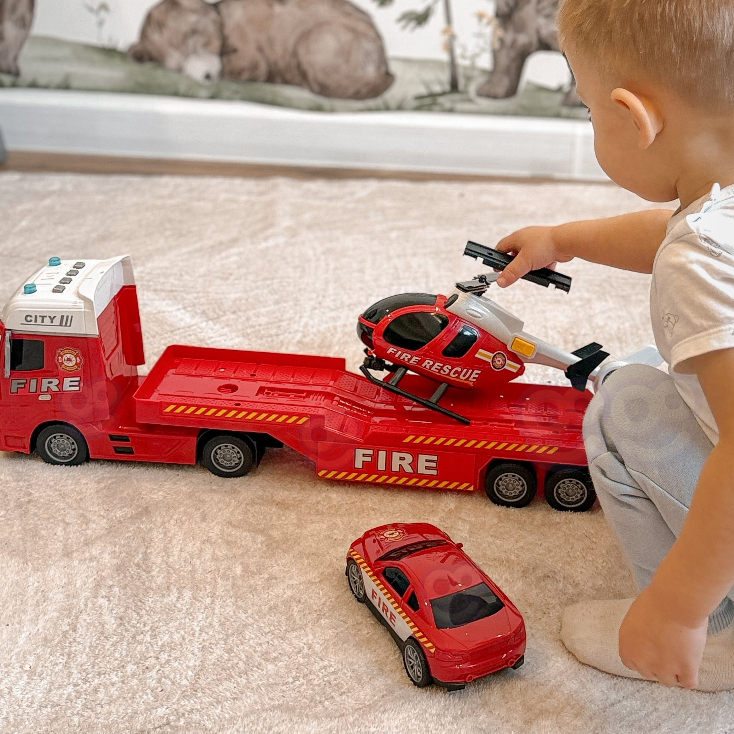 WOOPIE Zestaw Pojazdów Laweta Strażacka Helikopter Samochód Dźwięk Światła