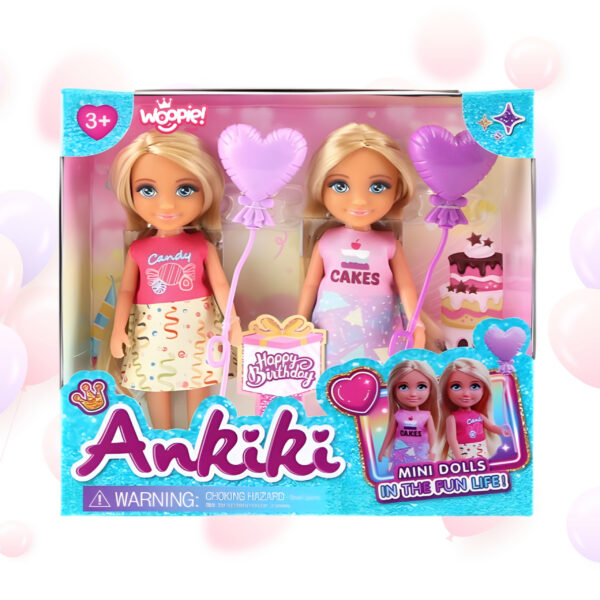 Przygotuj się na najsłodsze przyjęcie w historii z fantastycznym zestawem Ankiki „Happy Birthday” od WOOPIE! Ten wyjątkowy komplet zawiera dwie urocze mini laleczki w tematycznych, kolorowych strojach – jedna w stylu „Candy”, druga „Cakes”. Każda laleczka jest gotowa do świętowania, trzymając piękny balon w kształcie serca. To idealna zabawka do odgrywania scenek urodzinowych, pieczenia tortów i organizowania przyjęć. Zestaw rozwija kreatywność i pozwala dzieciom tworzyć niezliczone, radosne historie.