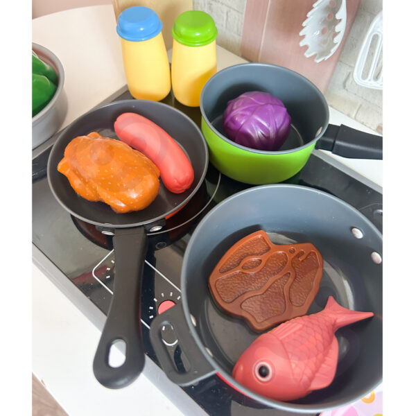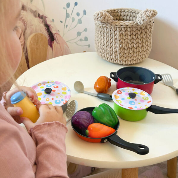 Duży zestaw kucharza marki Woopie to gratka dla każdego małego kucharza. Każdy maluch naśladuje rodziców, a zestaw Woopie pozwoli na posiadanie swoich naczyń i przygotowanie własnych dań. Wszystkie przedmioty zrobione z dbałością o każdy szczegół. Mamy tam garnek i rondelek, które mają swoją pokrywkę, dodatkowo patelnie, miseczkę, artykuły spożywcze oraz przybory kuchenne. Zestaw przeznaczony dla dzieci od 3 roku życia.