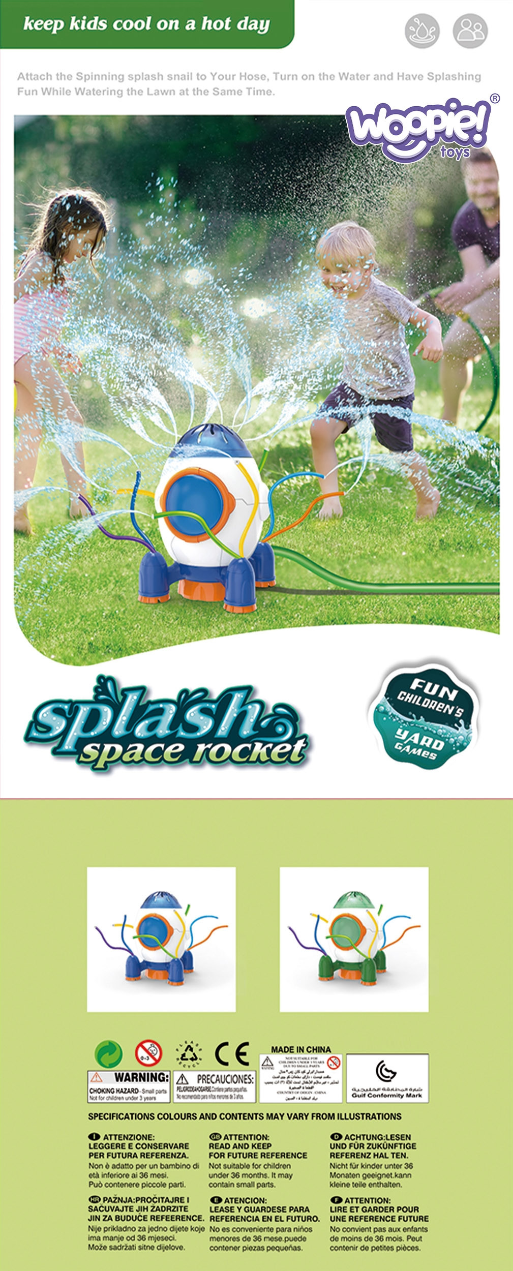 Zraszacz 2w1 w kształcie rakiety od marki WOOPIE łączy w sobie dwie funkcje, świetnie sprawdzi się jako zabawka dla dziecka oraz przy okazji nawodni Twój ogród. W momencie przepływu wody przez kolorowe rurki, które są giętkie woda rozpryskuje się w różnych kierunkach. Wykonany jest z najwyższej jakości materiału, co na pewno się przyda podczas szalonych zabaw. Zraszacz jest lekki, a krawędzie są gładkie, aby dzieci mogły ich dotykać. Dzięki czemu produkt jest bezpieczny w użytkowaniu.